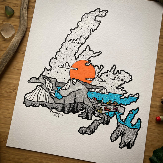 The Province of Newfoundland- 11x14 ORIGINAL Pen and Ink Illustration