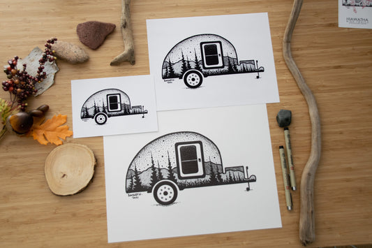 Teardrop Camping Trailer - Pen and Ink PRINT