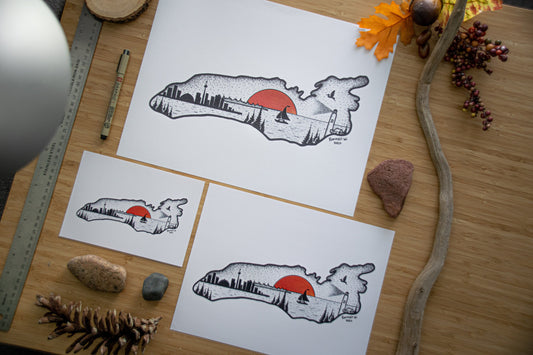 Lake Superior Silhouette - Pen and Ink PRINT - (2020 Design)