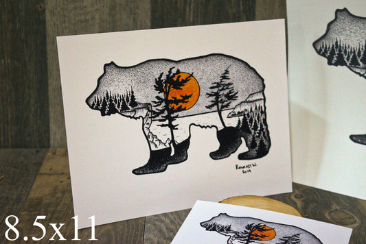 Bear Silhouette - ORIGINAL 11x14 Pen and Ink Illustration