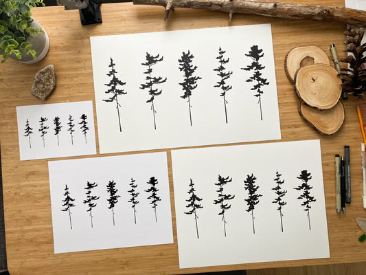 5 Pine Trees - Pen and Ink PRINT