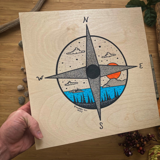 Compass Rose - ORIGINAL 12x12 Wood Panel Illustration