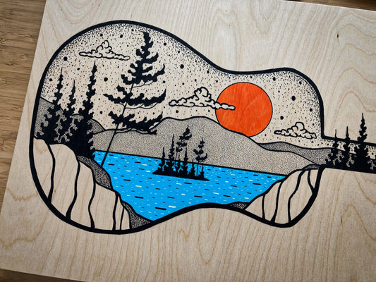 Guitar on Wood - ORIGINAL 12x24 Wood Panel Illustration
