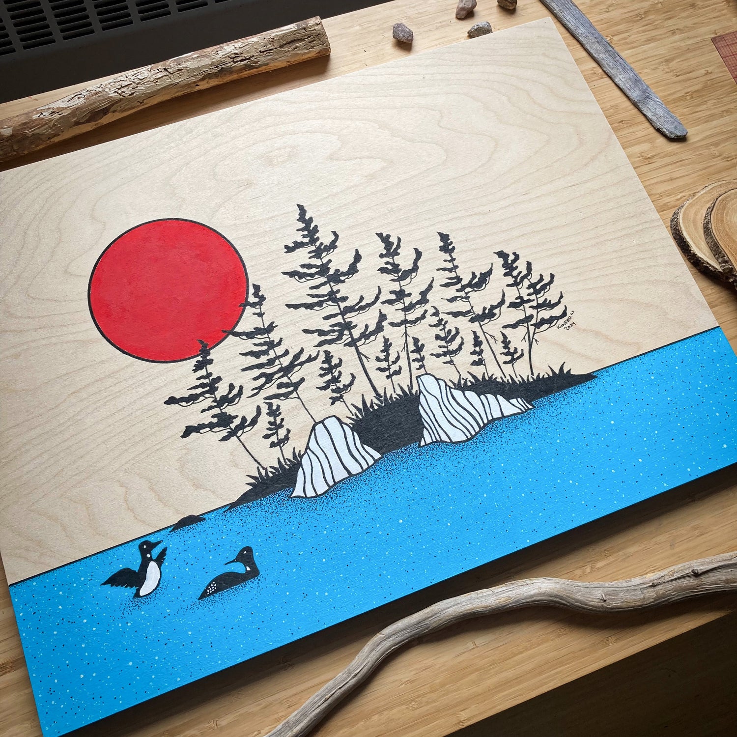 22x30" Birch Wood Panel / Pen and Ink + Acrylic