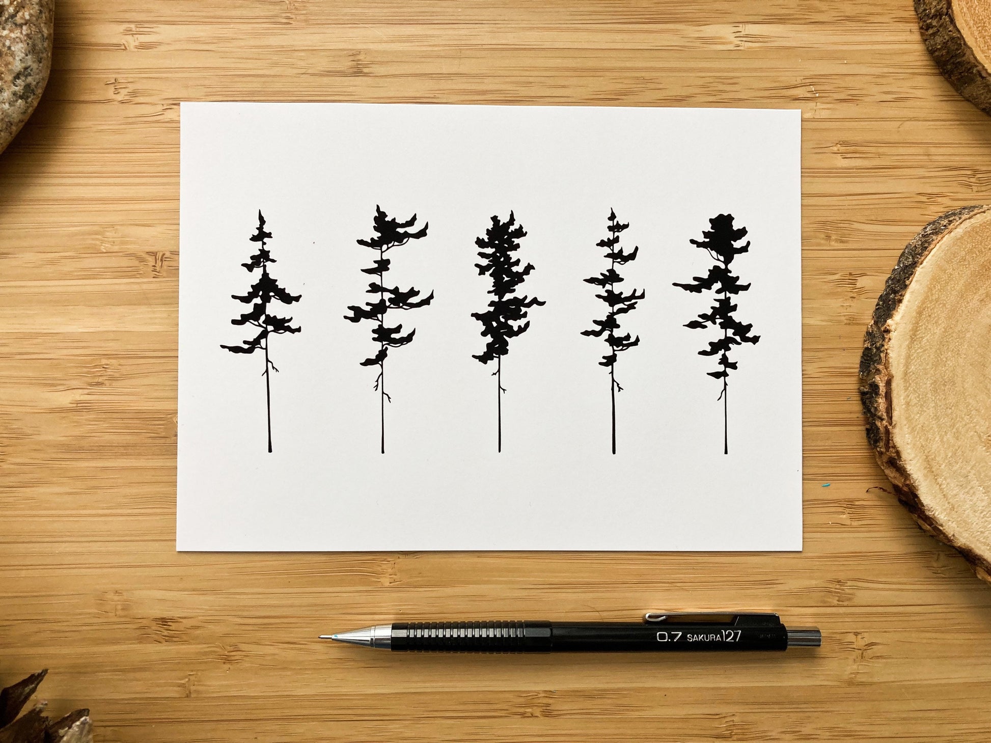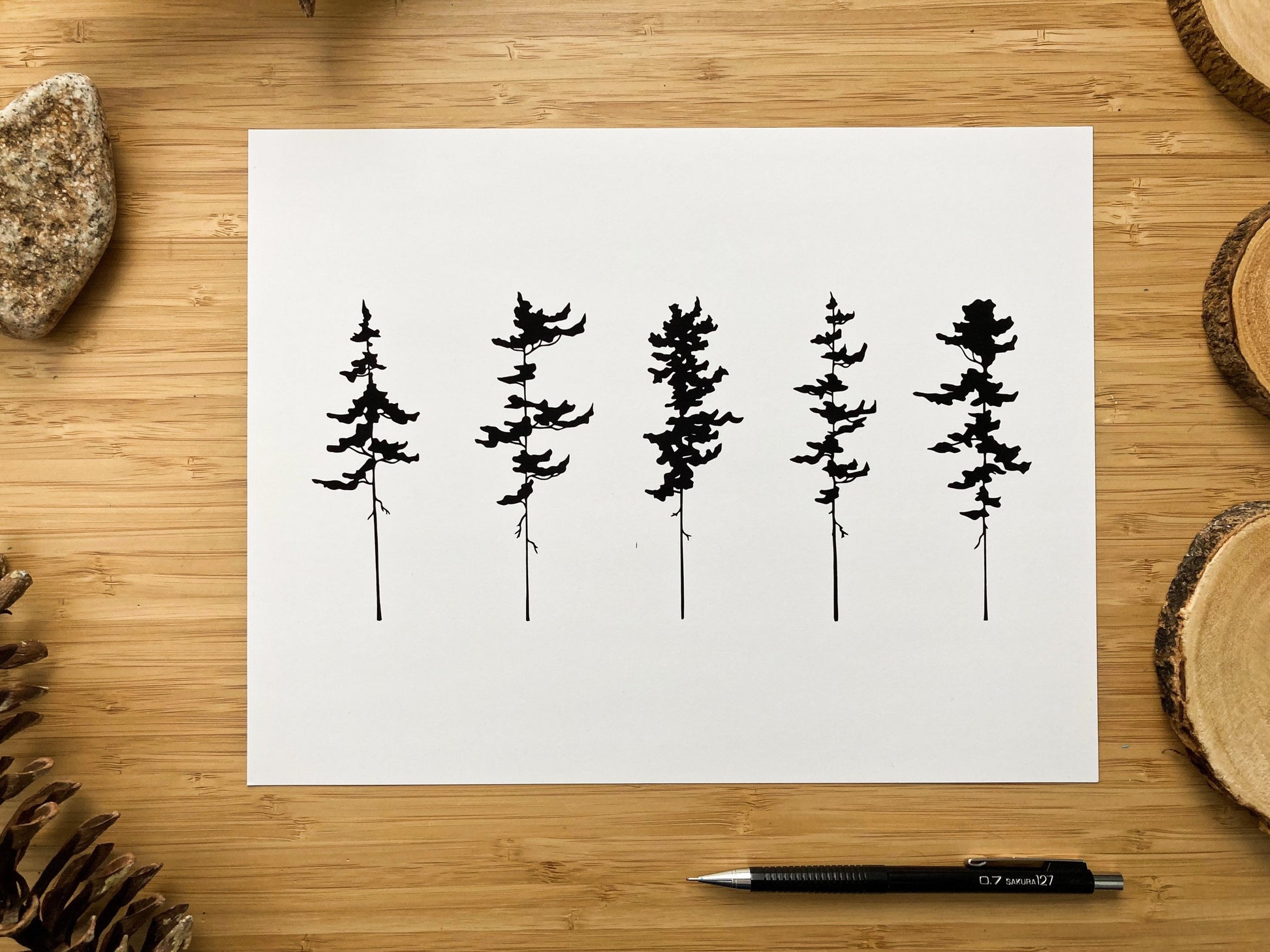 Elegant, black and white pine tree silhouettes are perfect decor pieces for those who love nature Printed on premium matte photo paper (5x7 & 8.5x11), and premium artist paper (11x14 & 11x17).