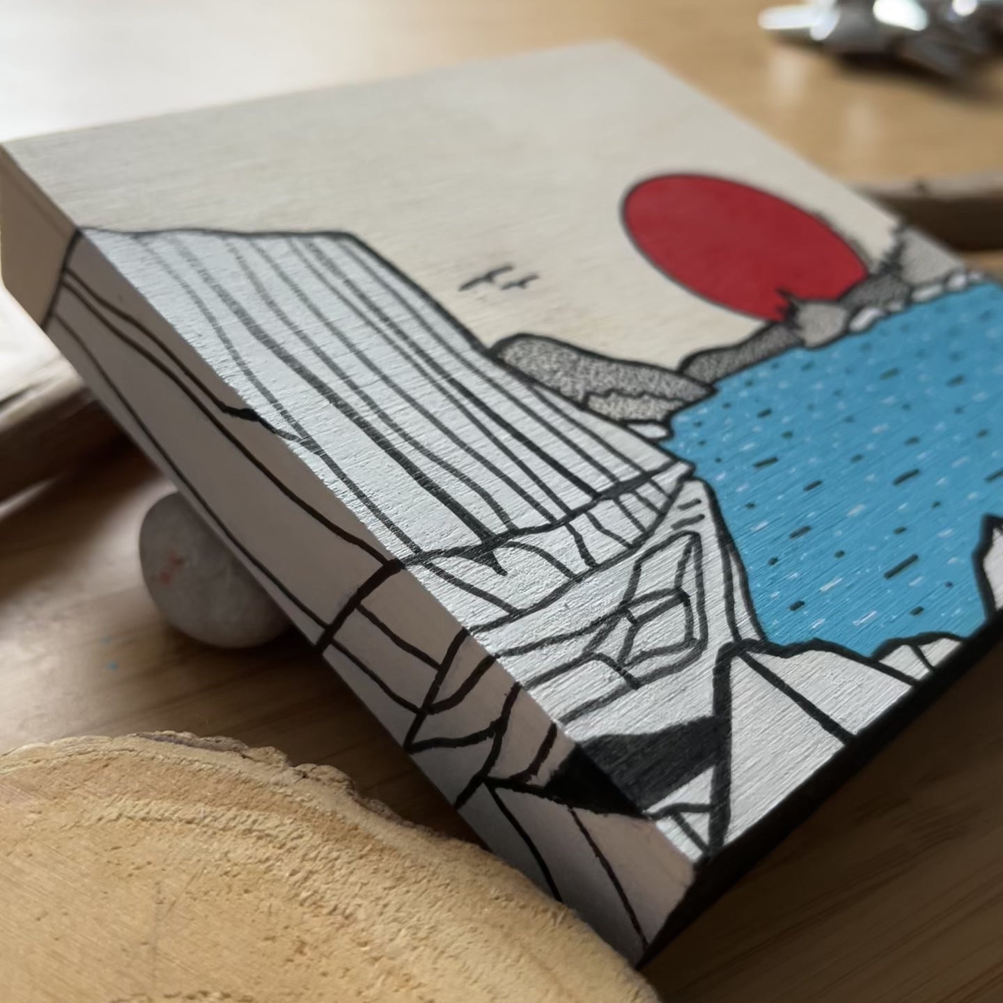 This little 5x5 inch birch wood panel illustration features the Agawa Rock found along the Coastal Trail in Lake Superior Provincial Park