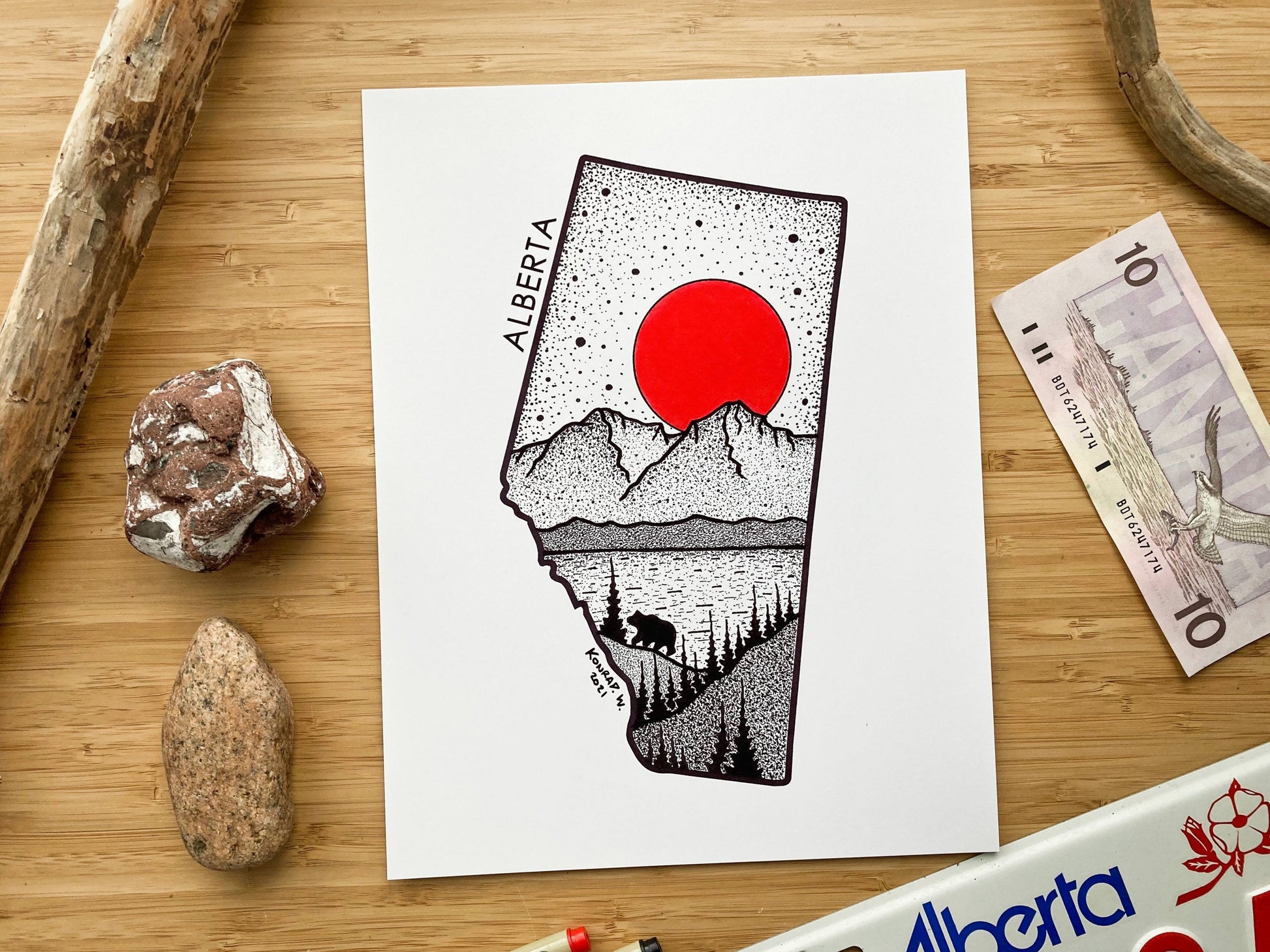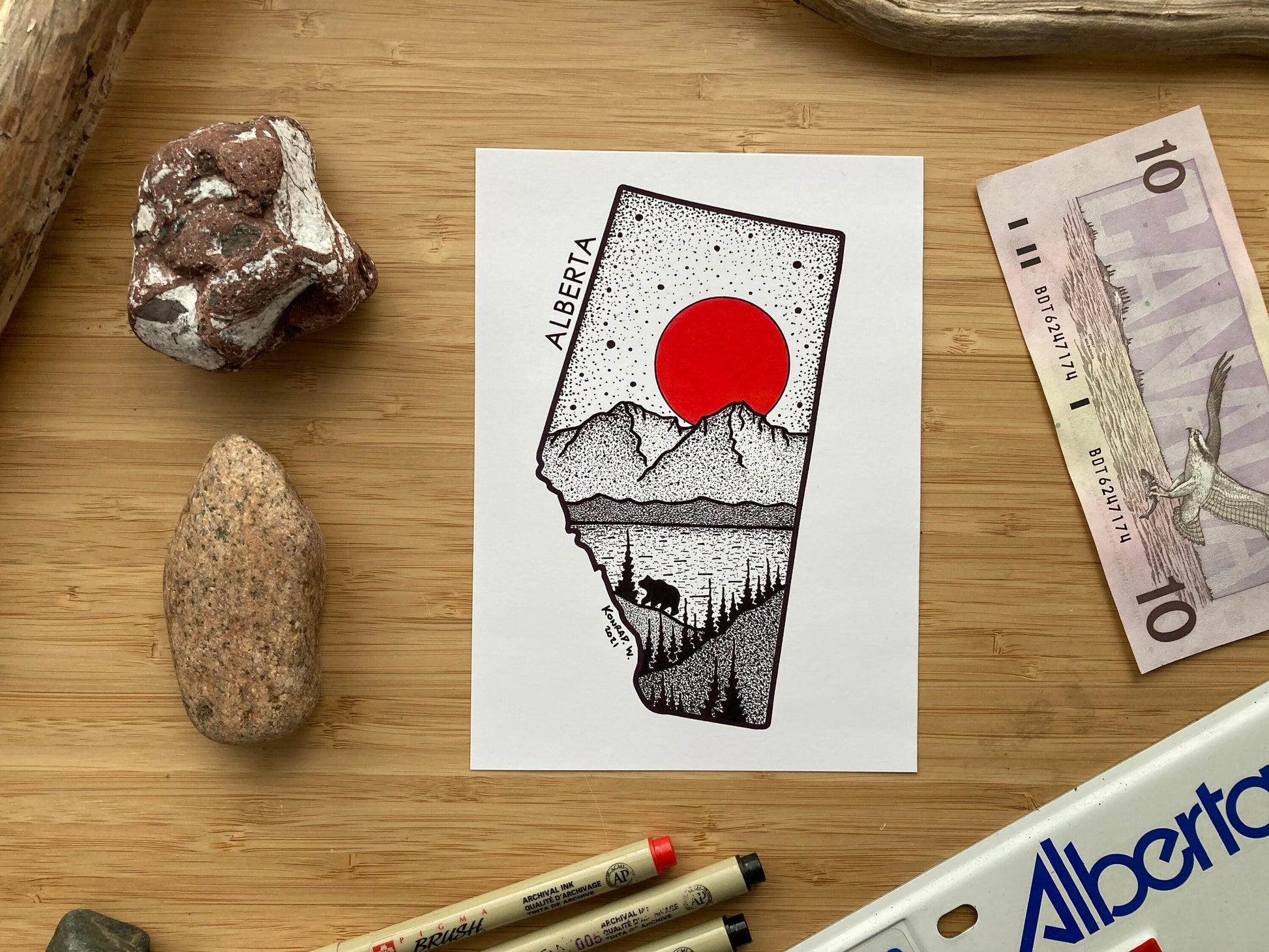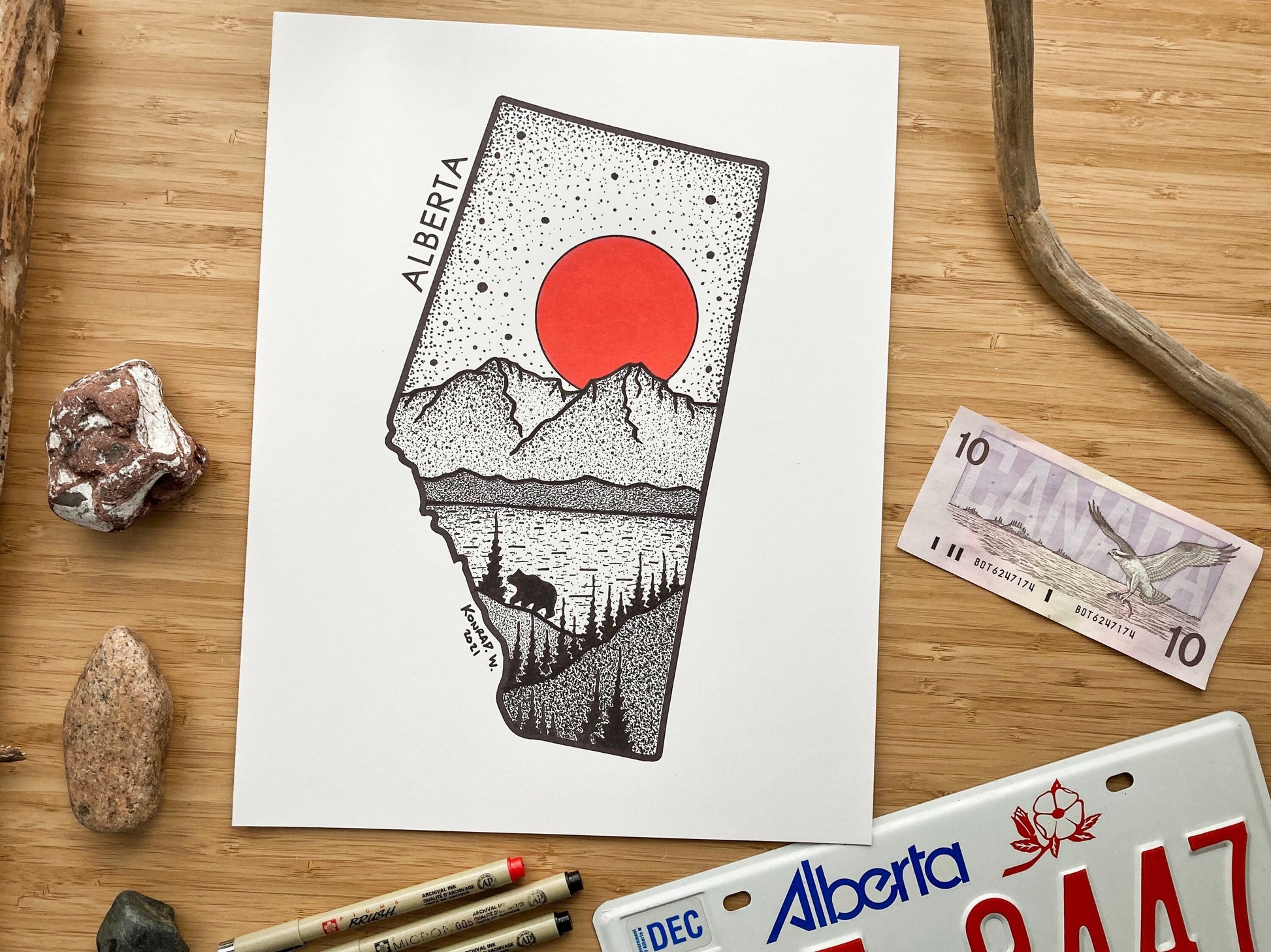 Alberta, a land so beautiful featuring the stunning Rocky Mountains. This Pen and Ink Print is perfect for those who have a connection with the Alberta and it's unmatched beauty!