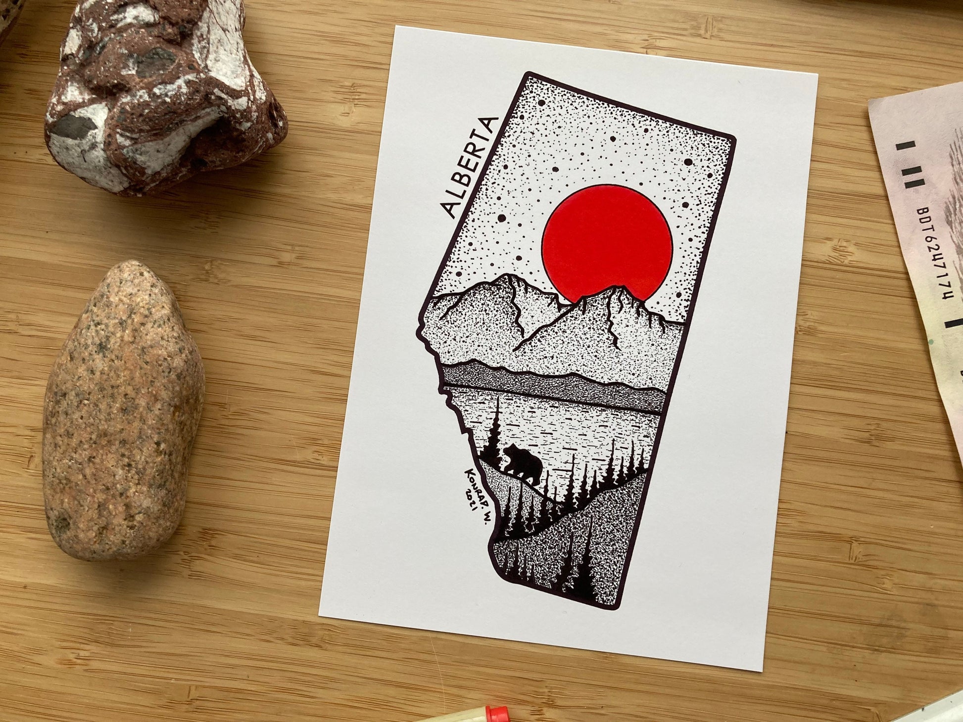 Originally illustrated by hand, and digitally optimized for high quality prints that are perfect for your home, cabin or office! Printed on premium matte photo paper (5x7 & 8.5x11), and premium artist paper (11x14). Please note that the 11x14 will have an off white tone compared to the smaller sizes.