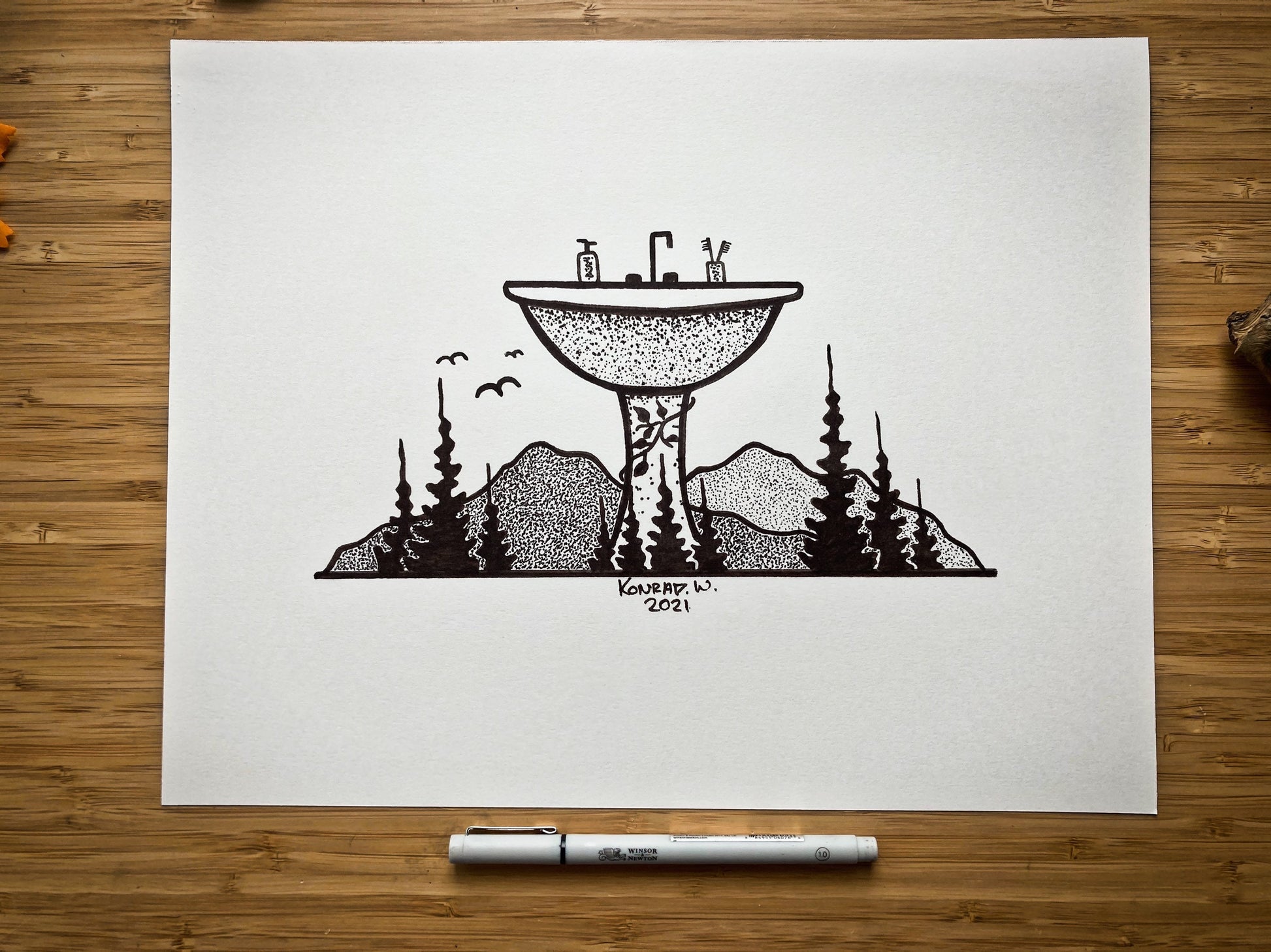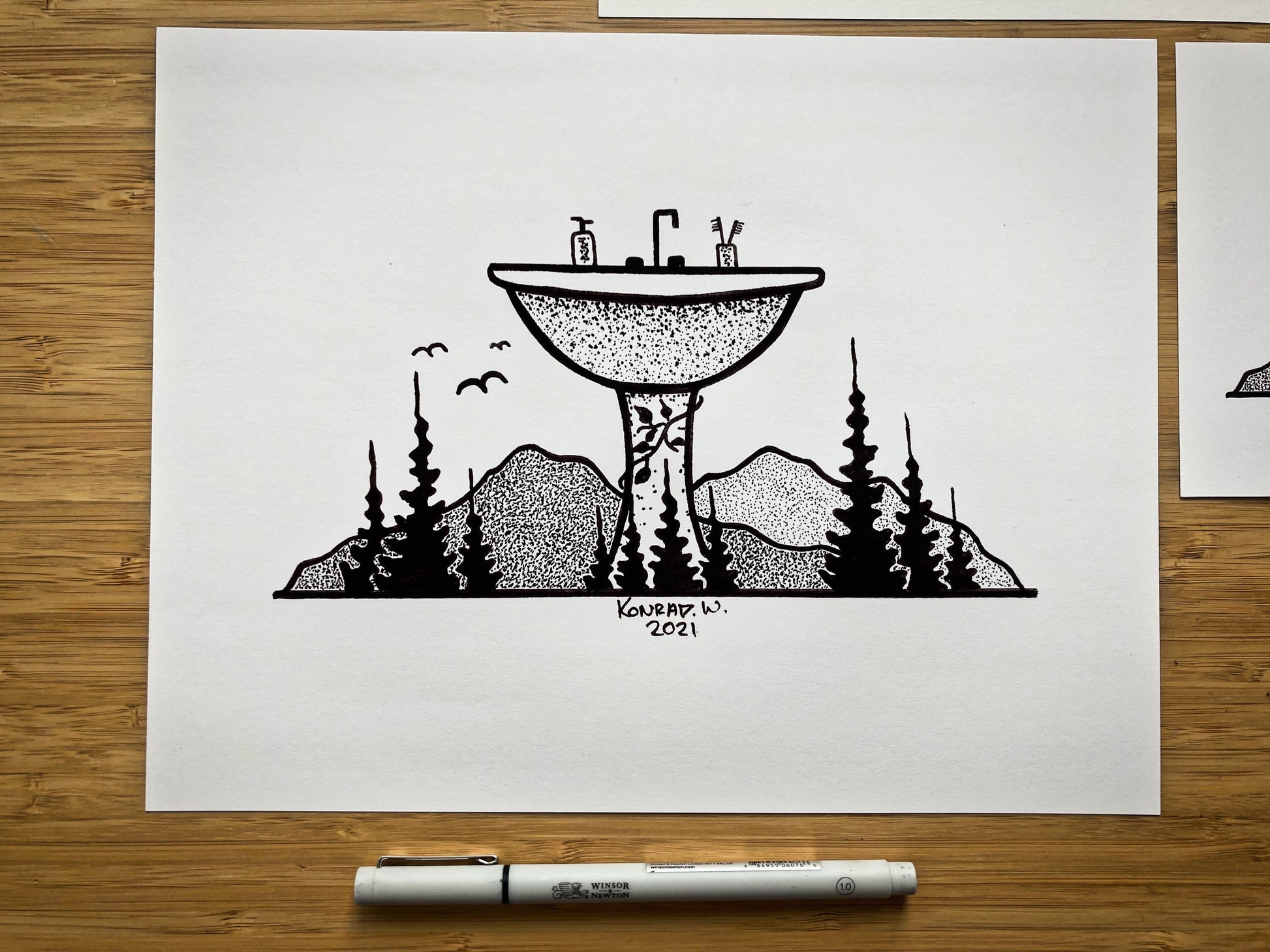 Enhance your bathroom decor with this Bathroom Sink Nature Pen and Ink Print! Perfect for those who want to bring in a little nature into their washrooms!