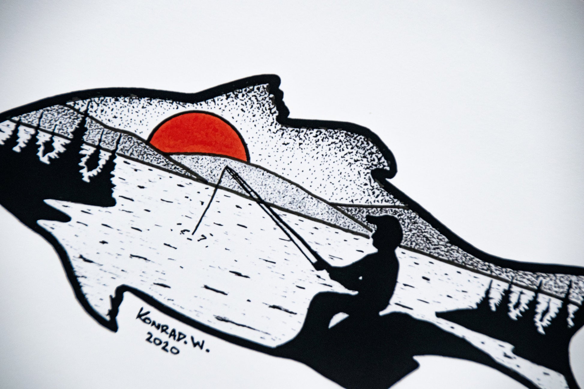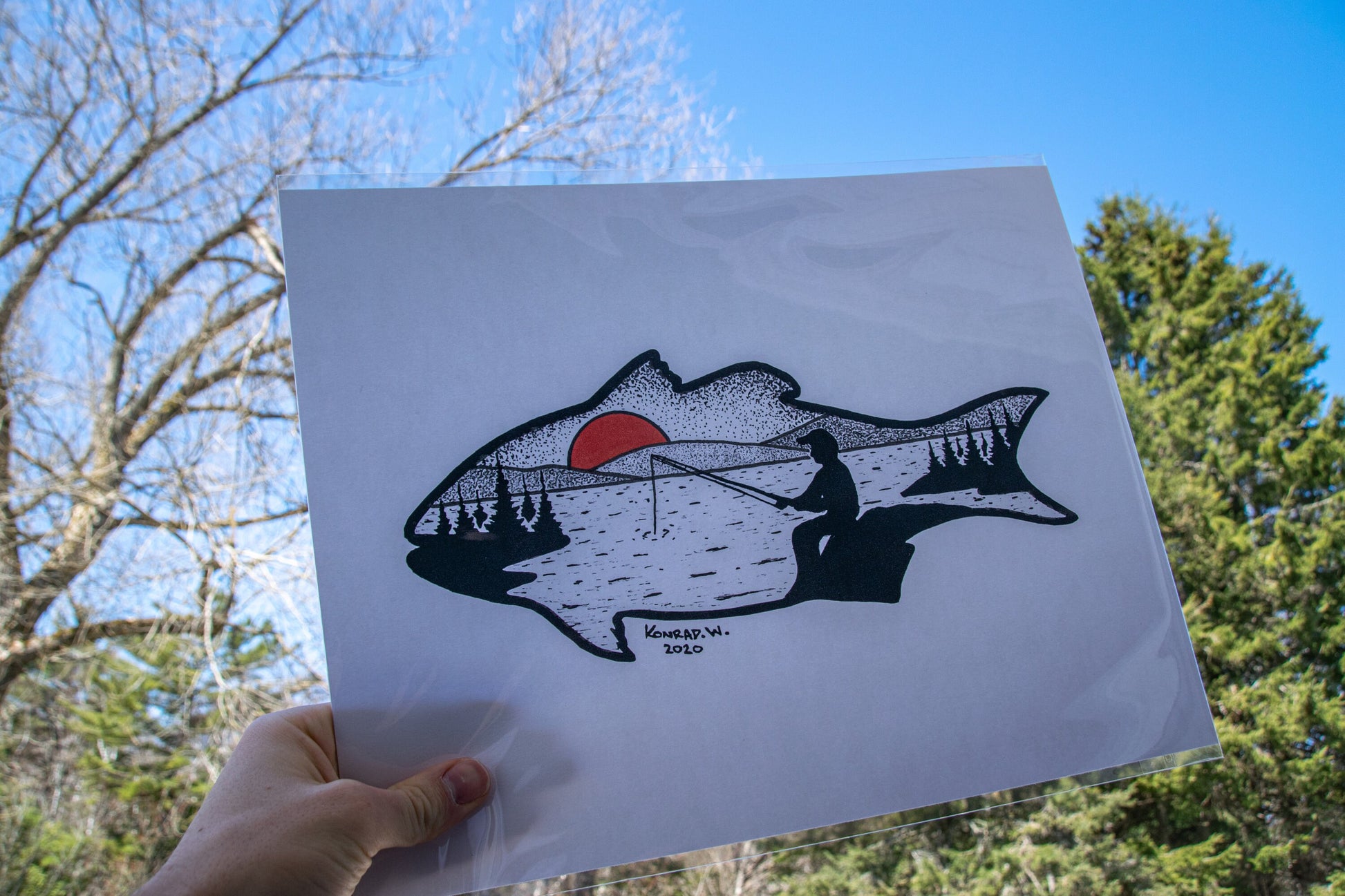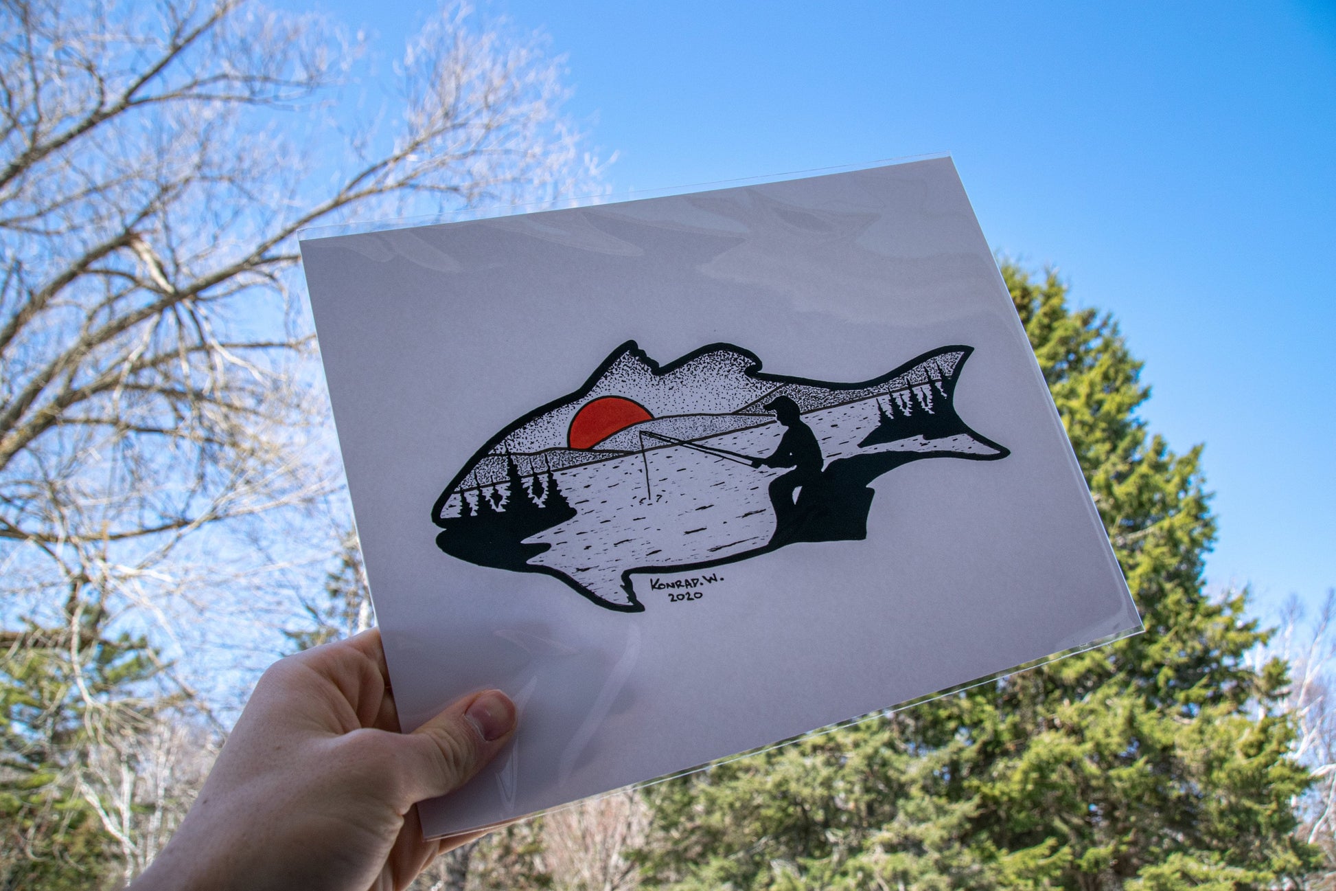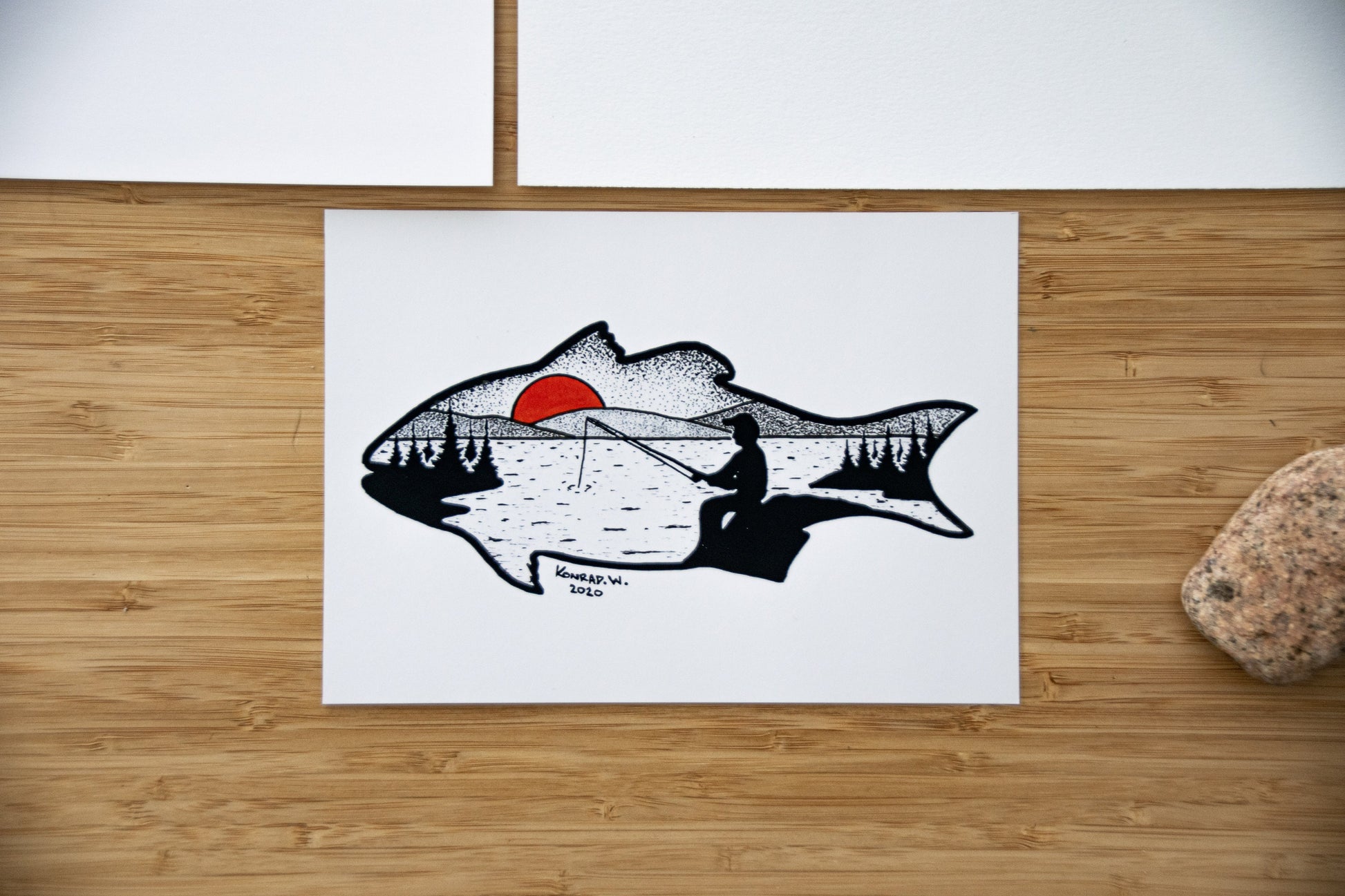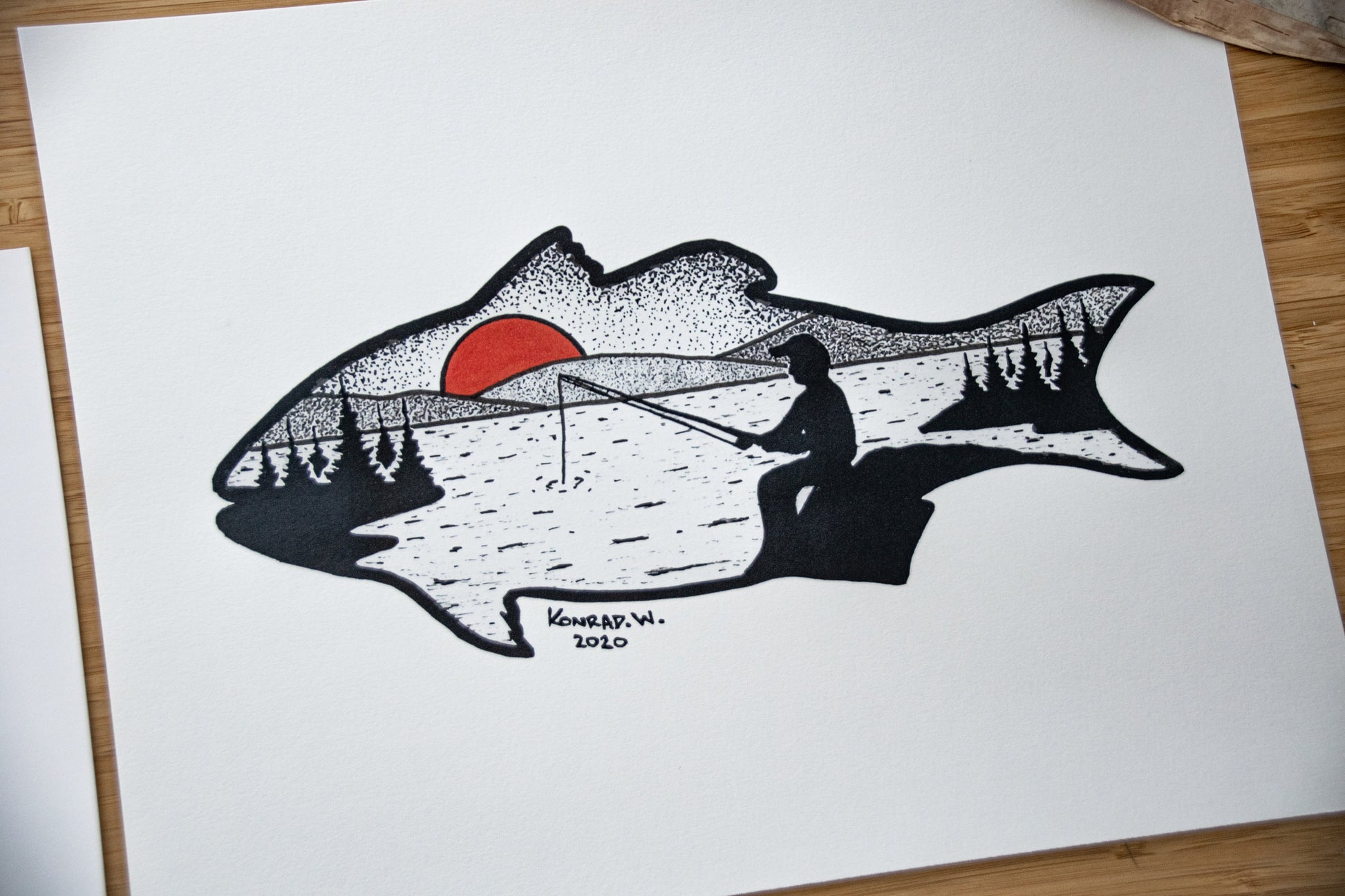 This Fishing Pen and Ink Print is perfect for those who rather be fishing than doing anything else! The design of these prints was created by hand using archival ink pens. Using various stippling and shading techniques, the ink gives this piece a more modern or bold design that goes well will virtually any decor style.