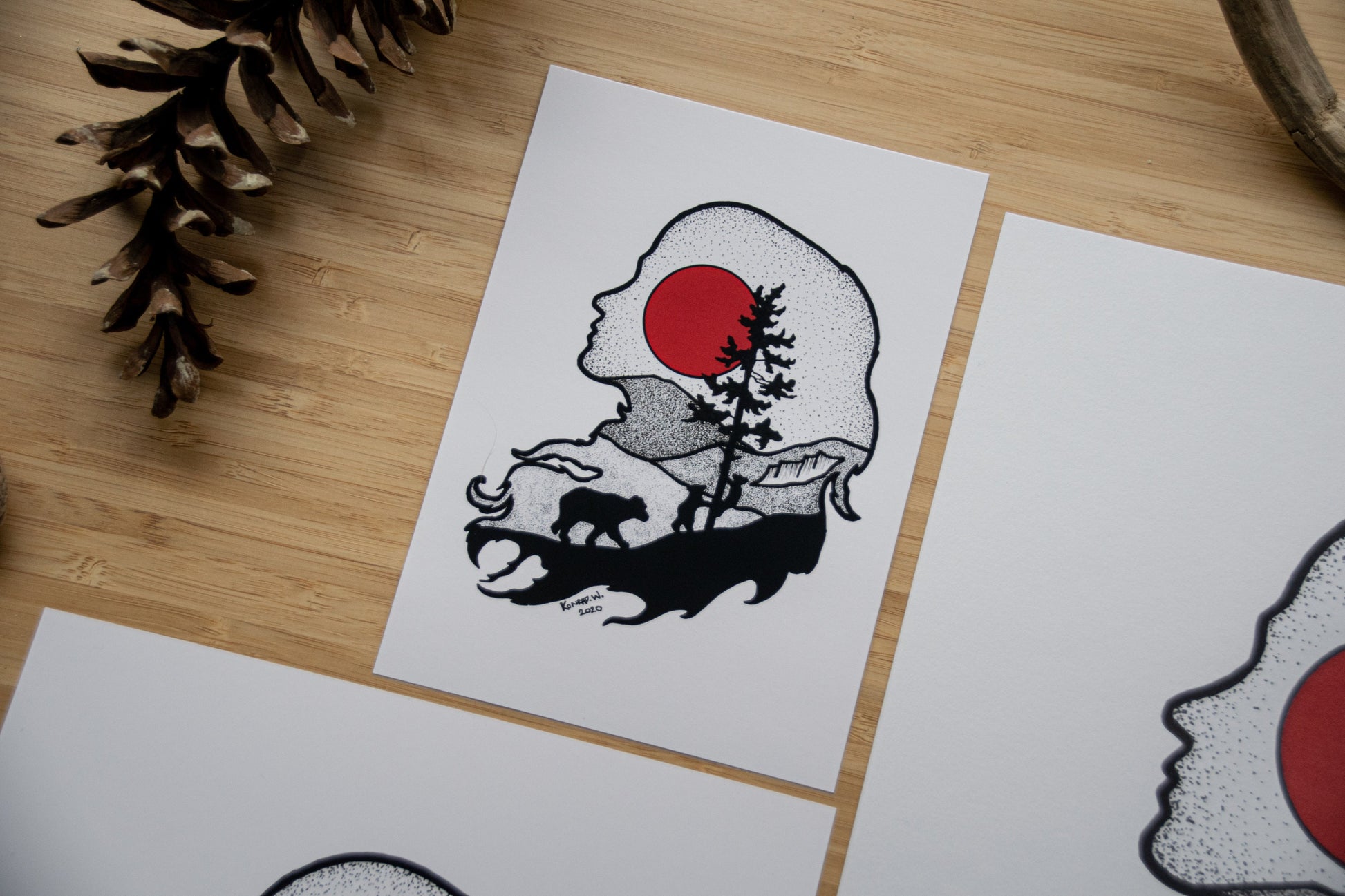 Inspired by Mother Nature itself, this Pen and Ink Print has many potential meanings. For those who love nature and the outdoors, these prints offer a great way to fill your indoor spaces with joy! It is also a perfect gift for mothers and spouses as it shows a mother bear and her cubs in the illustration. The design was originally designed by hand using the finest archival ink to give it a clean and modern style fit for virtually any space. These Prints are made available in three different sizes; 5x7, 8.5x11 and 11x14 inches. Printed on premium matte photo paper (5x7 & 8.5x11), and premium artist paper (11x14). Please note that the 11x14 will have an off white tone compared to the smaller sizes. Made to order. Please allow 1 business day to process order. **Frame pictured is not included** Packaged in a clear protective bag for shipping, and mailed in rigid mailer. *Standard shipping for 5x7" and 8.5x11" does not come with a tracking number. Be sure to follow @naturally_illustrated on Instagram and @naturallyILLUSTRATEDofficial on Facebook for the latest updates and newest projects!