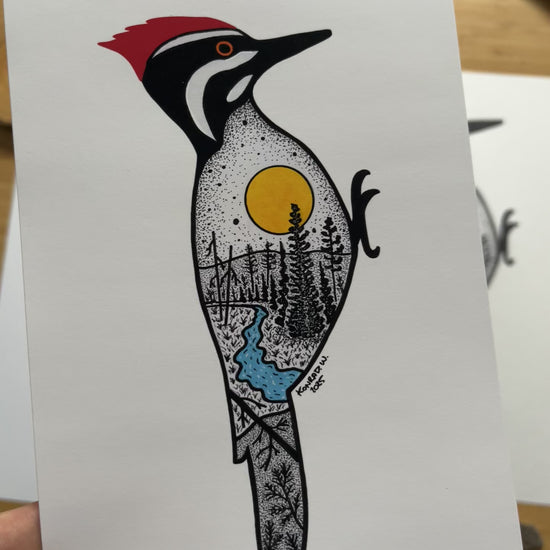 Inspired by the beautiful red capped Pileated Woodpeckers and their natural habitats, this illustration is great if you or someone you know loves spending time in nature, these Pen and Ink Prints are perfect ways to bring the outdoors inside to your home or cottage.