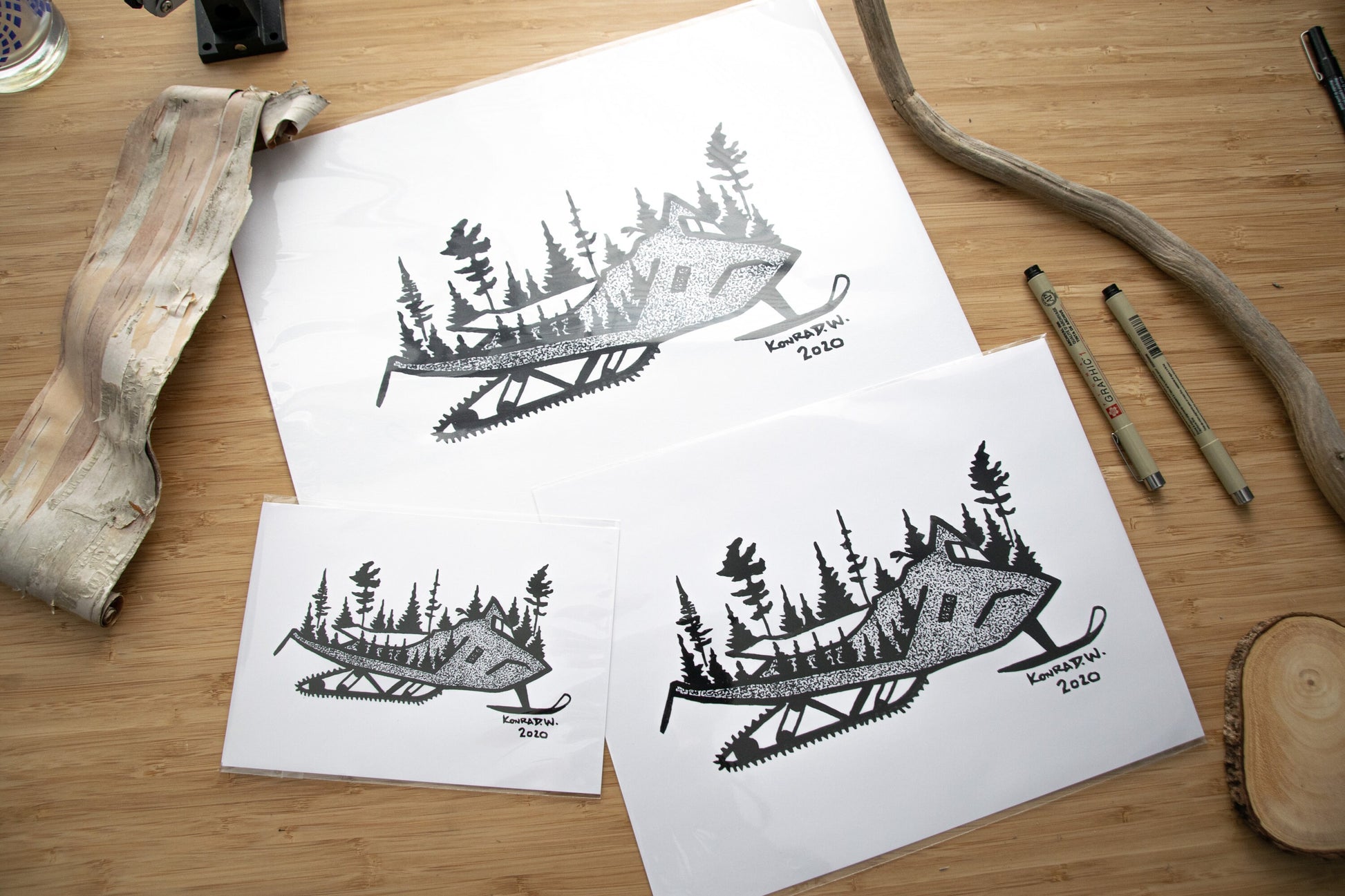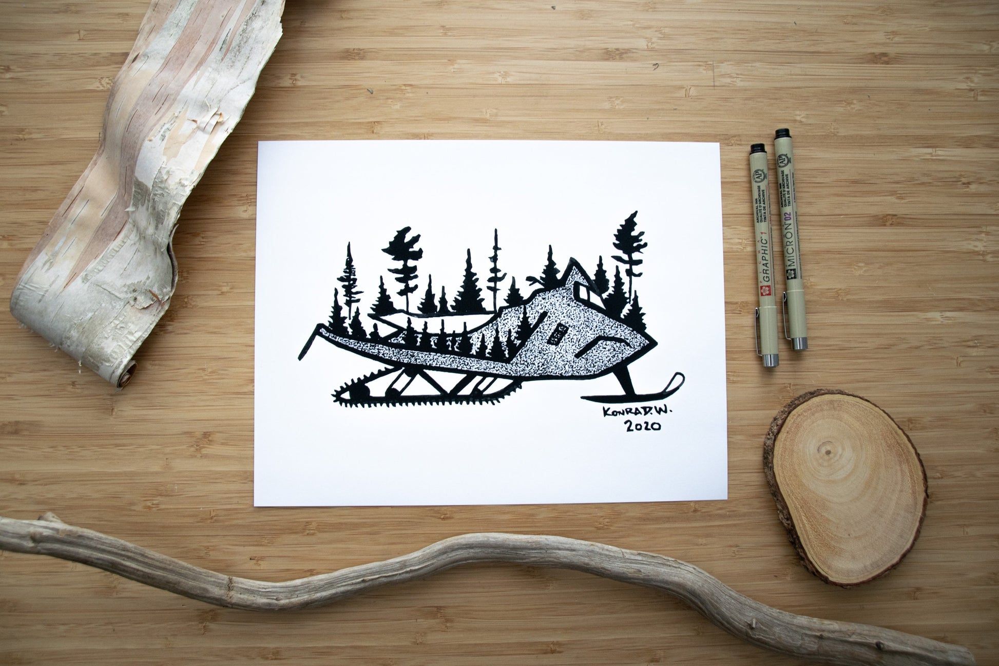 I don't go a day without seeing a snowmobile in the winter months where I live! A huge part of North American an Nordic Cultures, Snowmobiles provide us with methods of transportation in our desolate environments, and they also are a favorite pass time to many. If you or someone you know like snowmobiling, this print is perfect, featuring a side profile of a sled with a varied arranged of trees commonly found in the Boreal forest. The design of these prints was created by hand using archival ink pens. Using various stippling and shading techniques, the ink gives this piece a more modern or bold design that goes well will virtually any decor style. These prints come in three different sizes offering you options that fit a multiple of different spaces, from your home, office or cottage. Sizes include: 5x7" 8.5x11" 11x14" The artwork is printed in house with a premium inkjet printer on matte photo paper (5x7" & 8.5x11") and high quality artist paper (11x14"). Please note that the largest print size will have a slightly off white background when compared directly beside the two smaller sizes due to the different type of paper. Made to order. Allow 1 business day to process order. Packaged in a clear protective bag for shipping and mailed in a rigid envelope. *Standard shipping for 5x7" and 8.5x11" does not come with a tracking number. Be sure to follow @naturally_illustrated on Instagram and @naturallyILLUSTRATEDofficial on Facebook for the latest updates and newest projects!