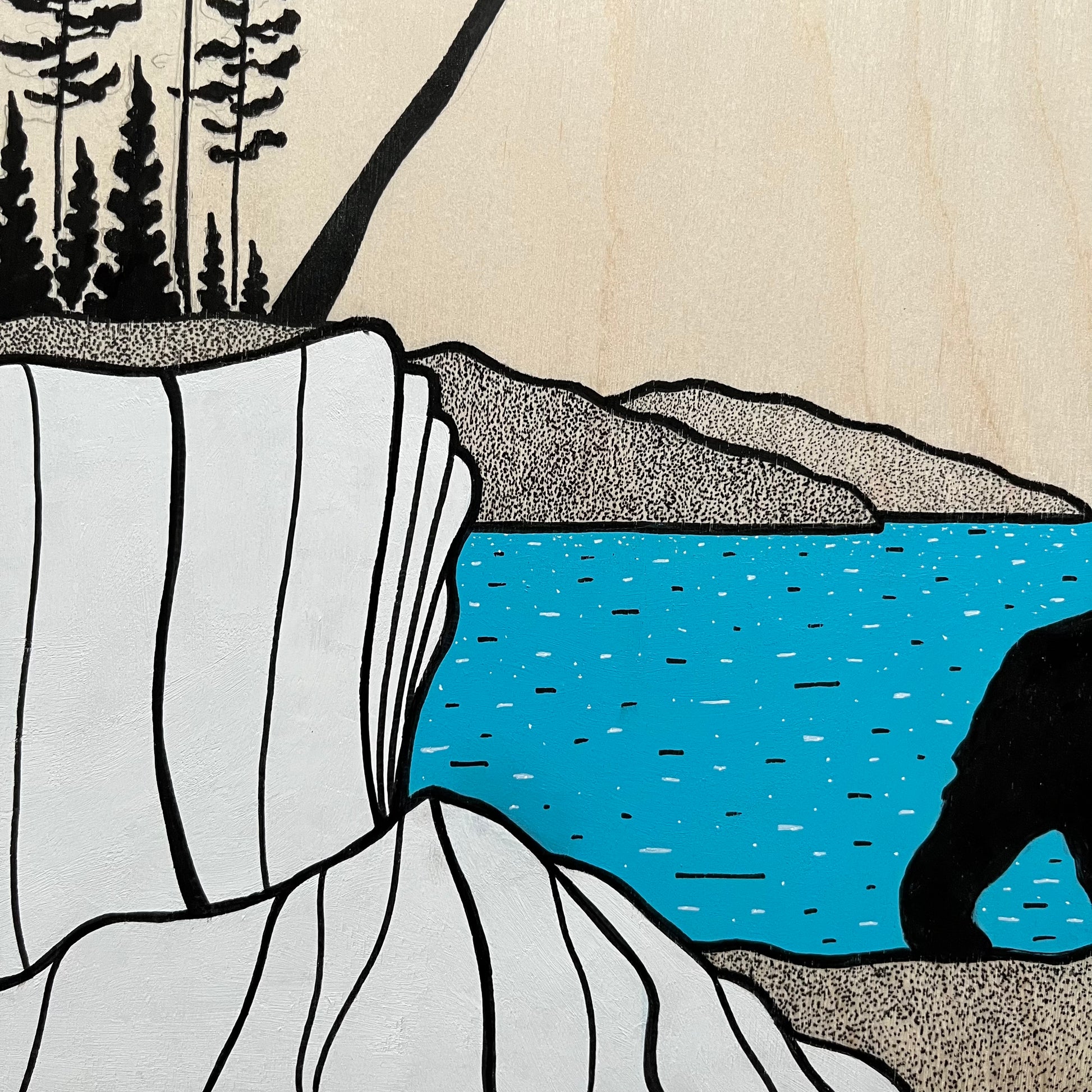 The Shore Bear - ORIGINAL Illustration On Birch Wood Panel