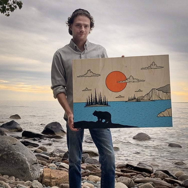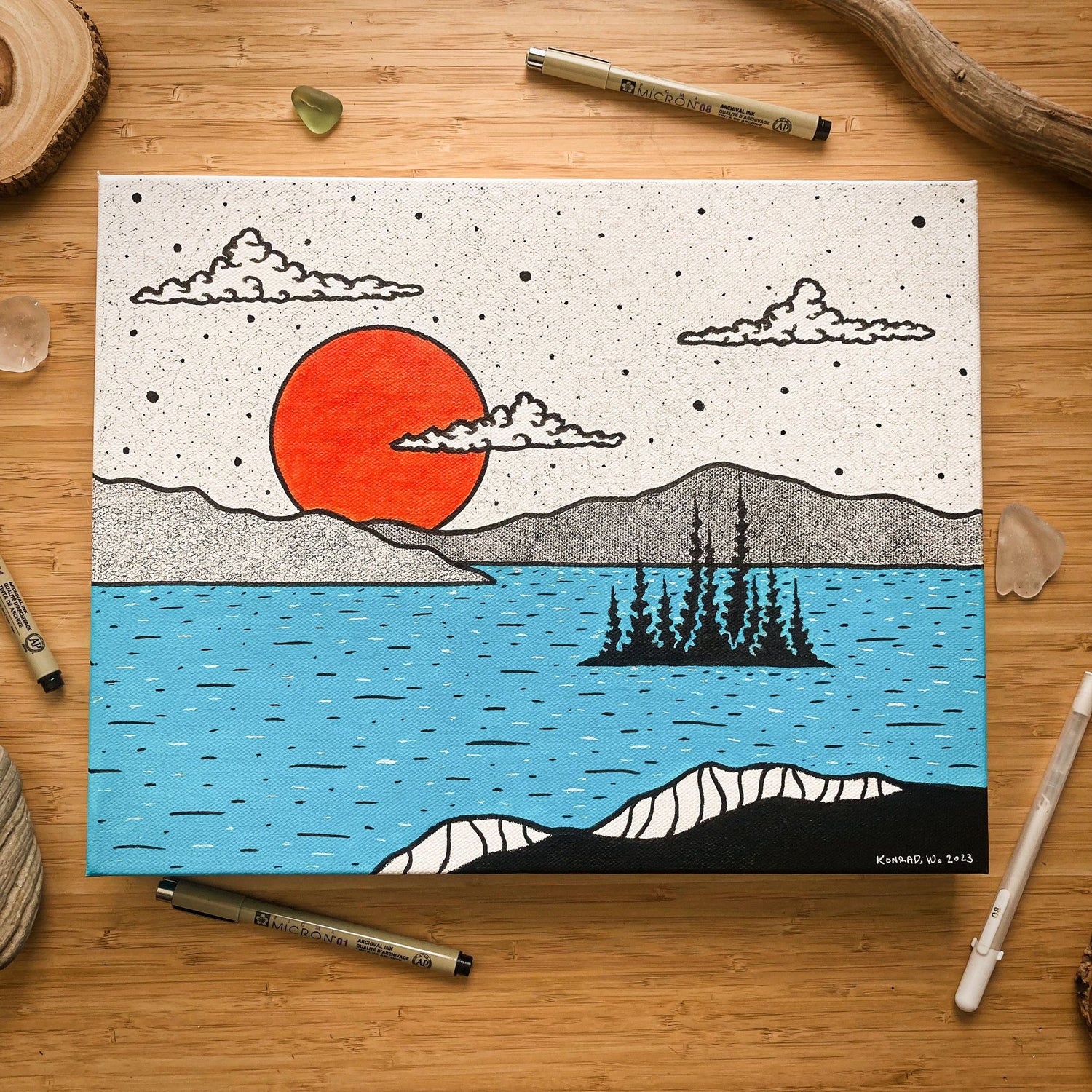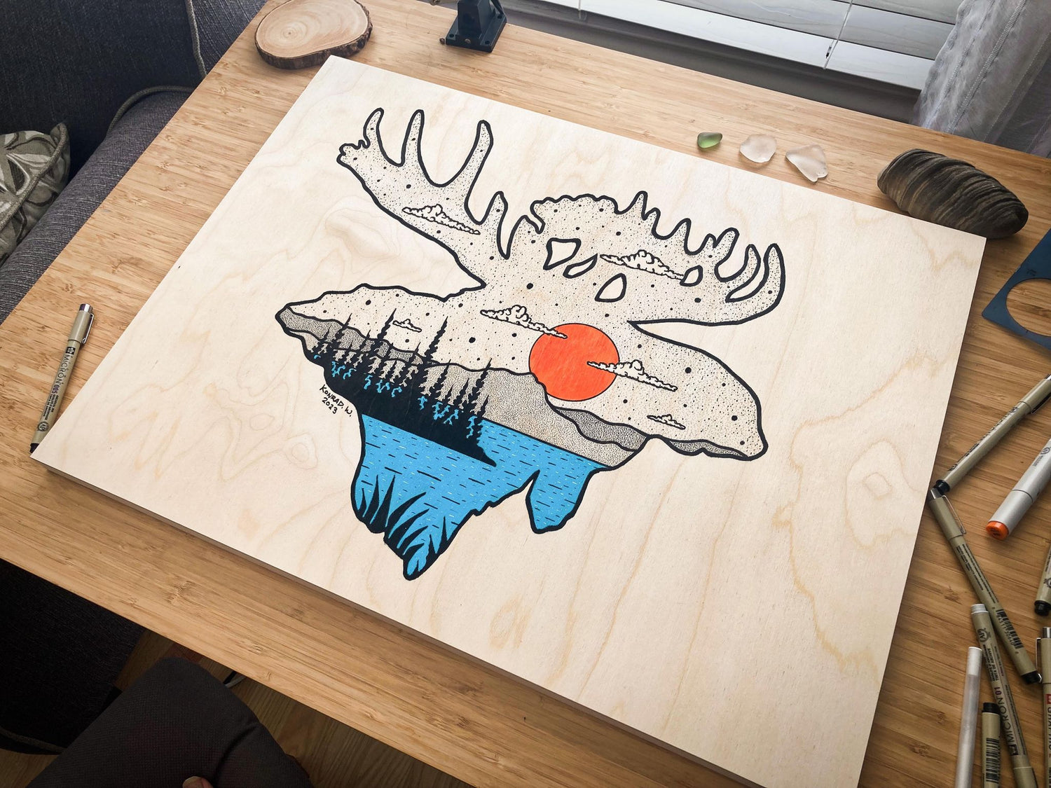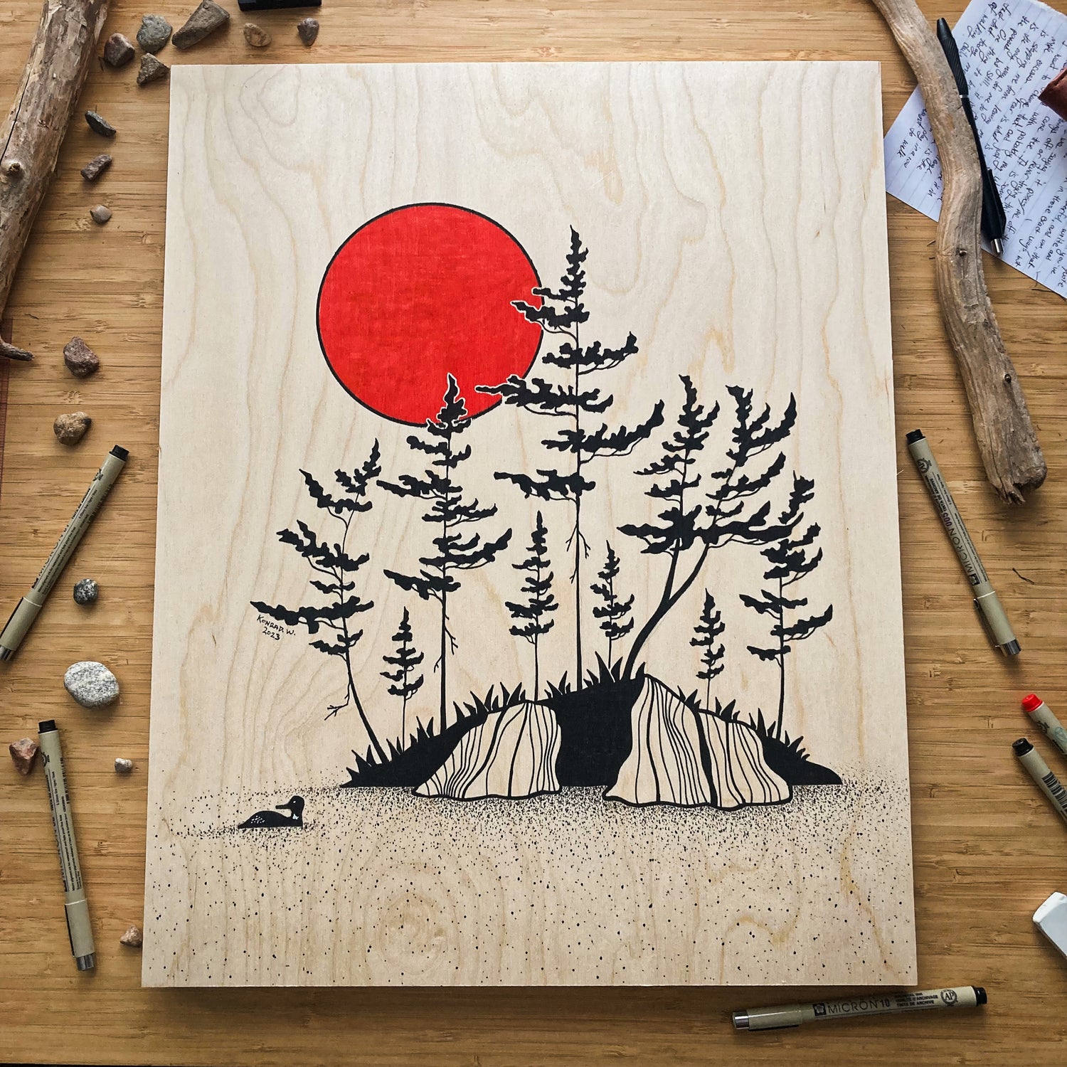 18x24" Birch Wood Panel / Pen and Ink + Acrylic