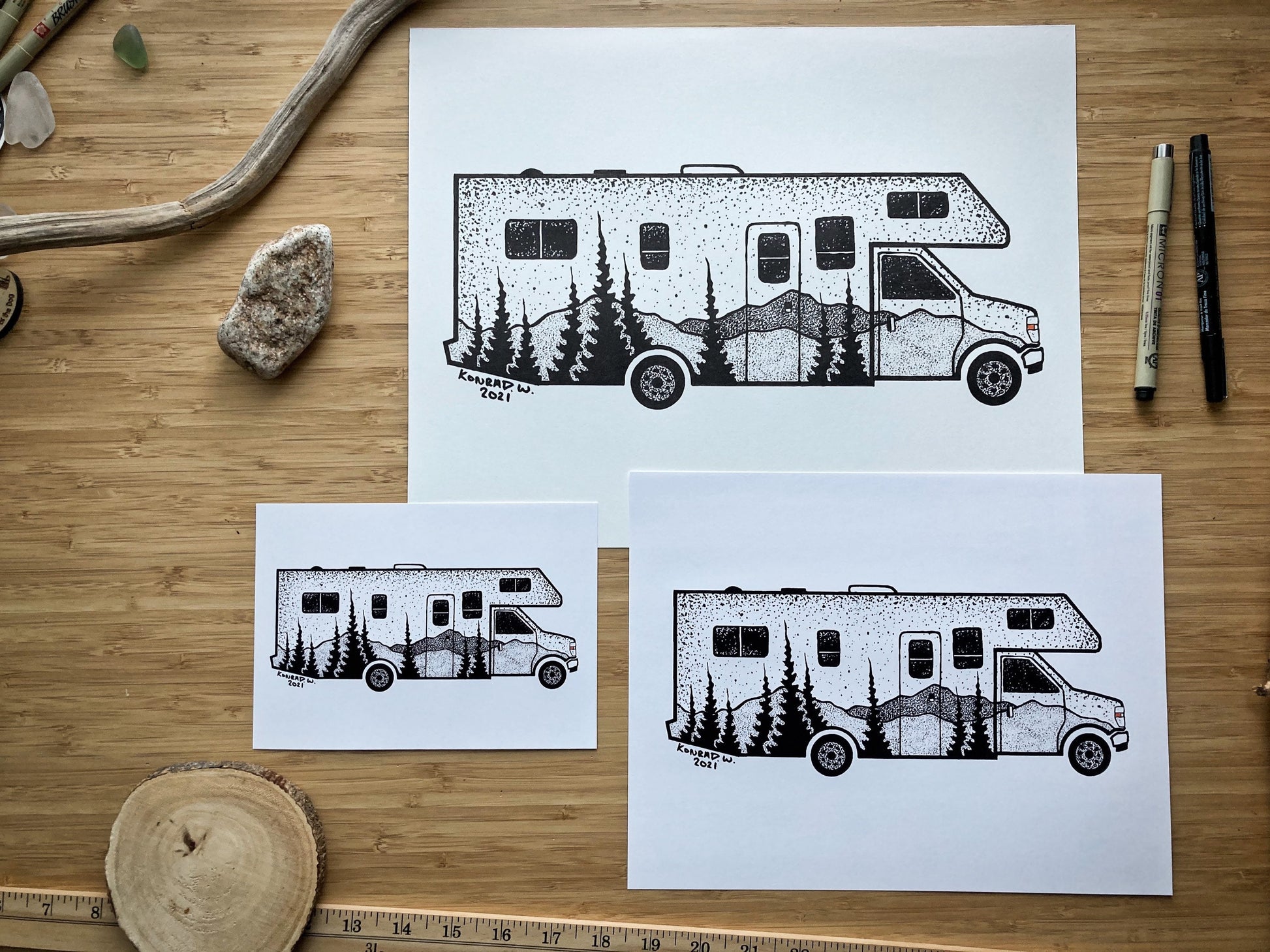 These prints come in three different sizes offering you options that fit a multiple of different spaces, from your home, office, cottage or even RV! Sizes include: 5x7" 8.5x11" 11x14" The artwork is printed in house with a premium inkjet printer on matte photo paper (5x7" & 8.5x11") and premium artist paper (11x14)