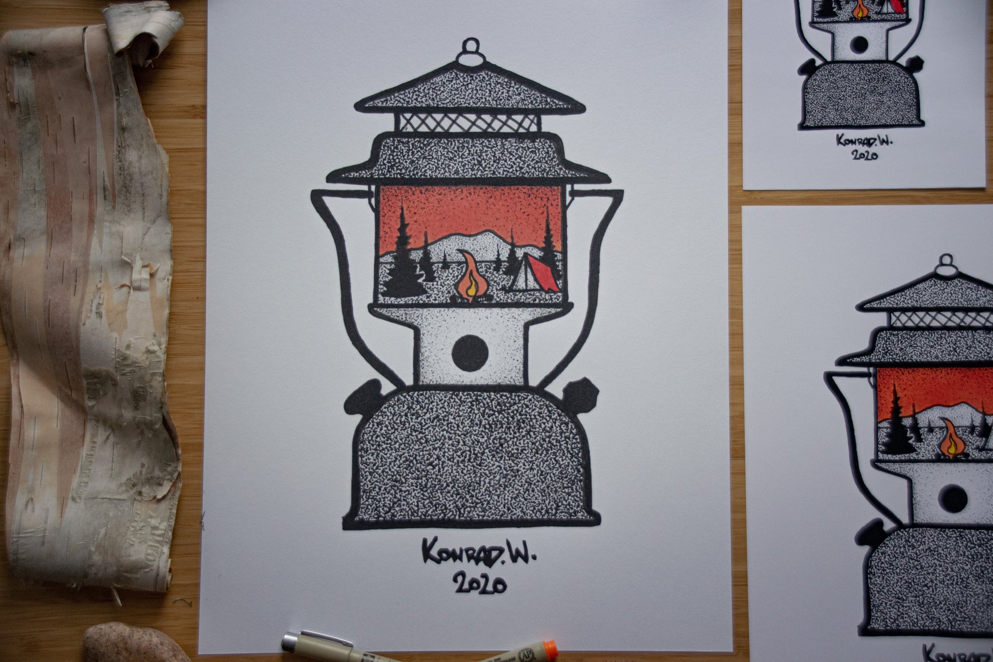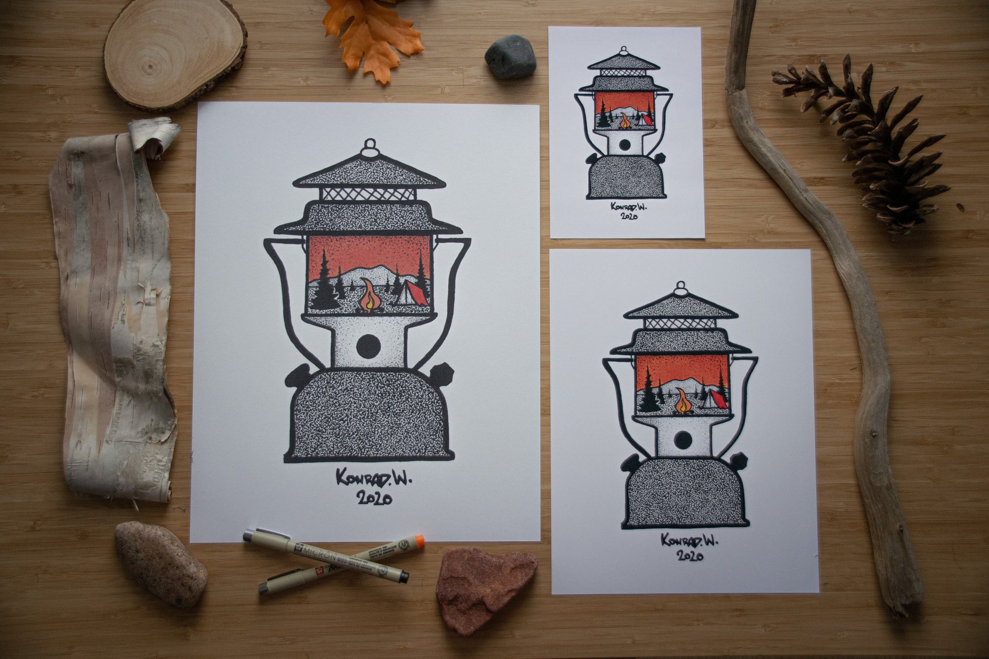 Illustrated from my personal inspirations and love of camping, using stippling techniques to create a unique piece of art perfect for any indoor space.