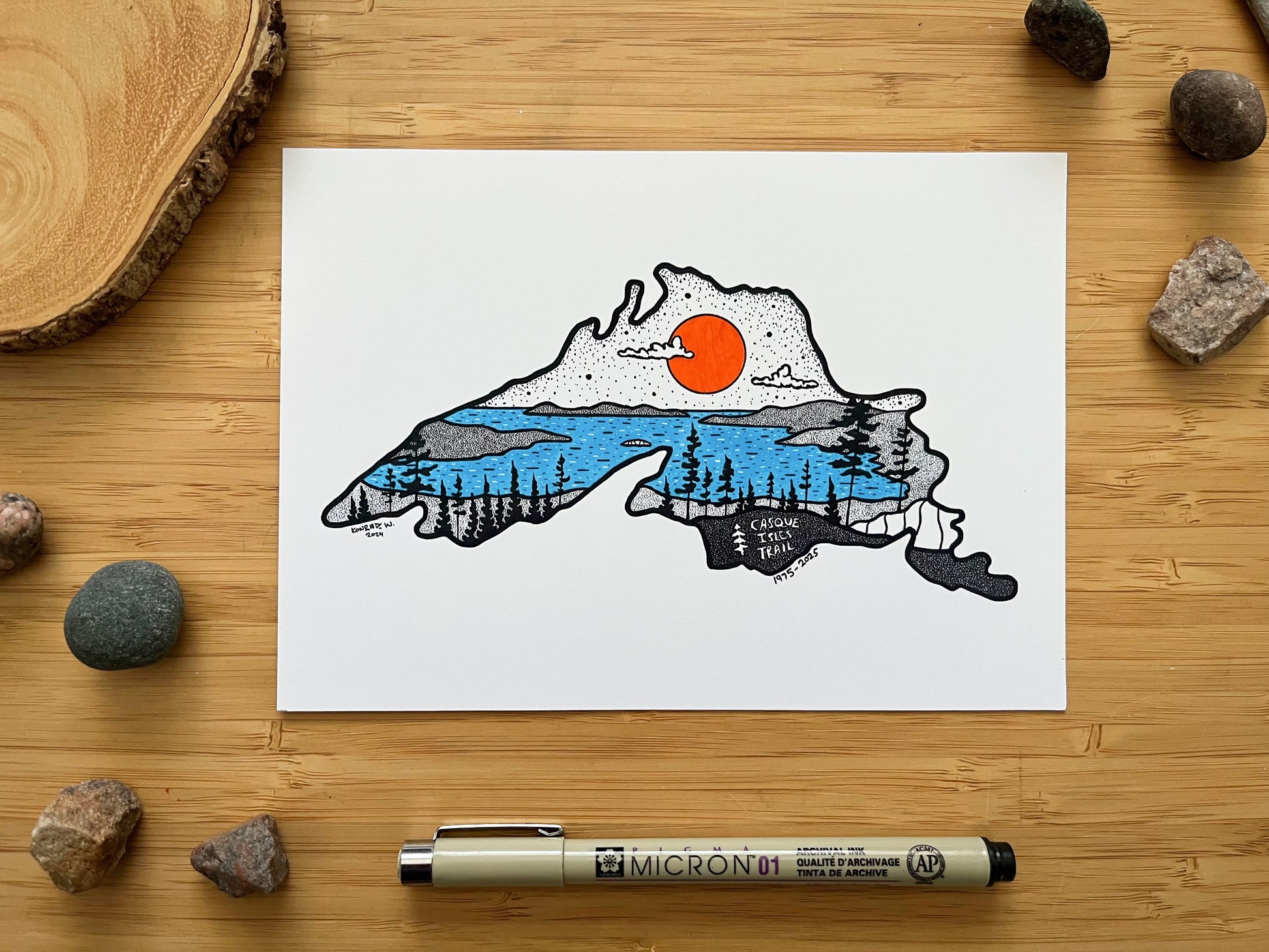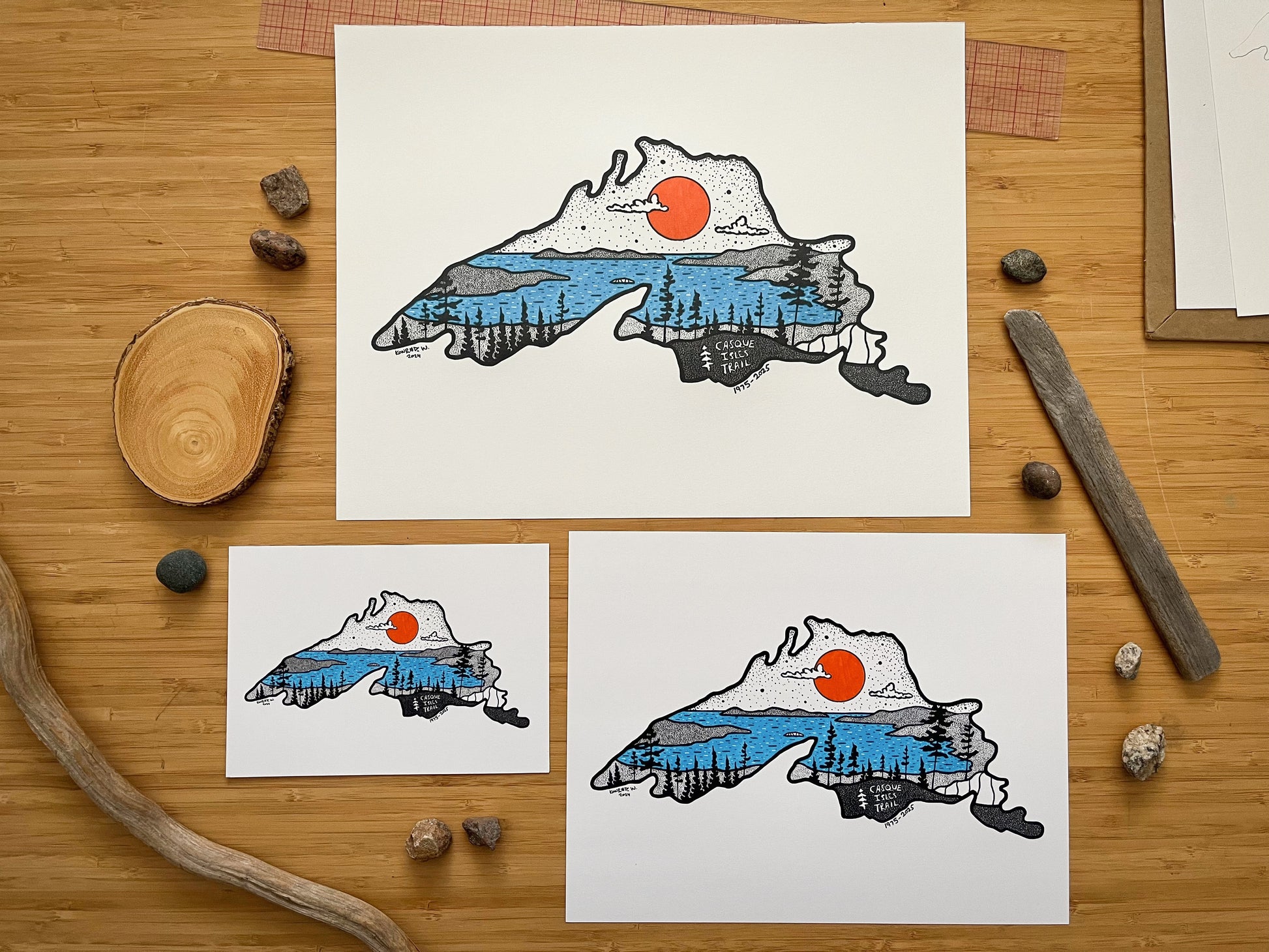 Created in partnership with The Casque Isles Hiking Club, these Lake Superior Prints are to commemorate the beauty found on the Voyageur Trails of the North Shore.