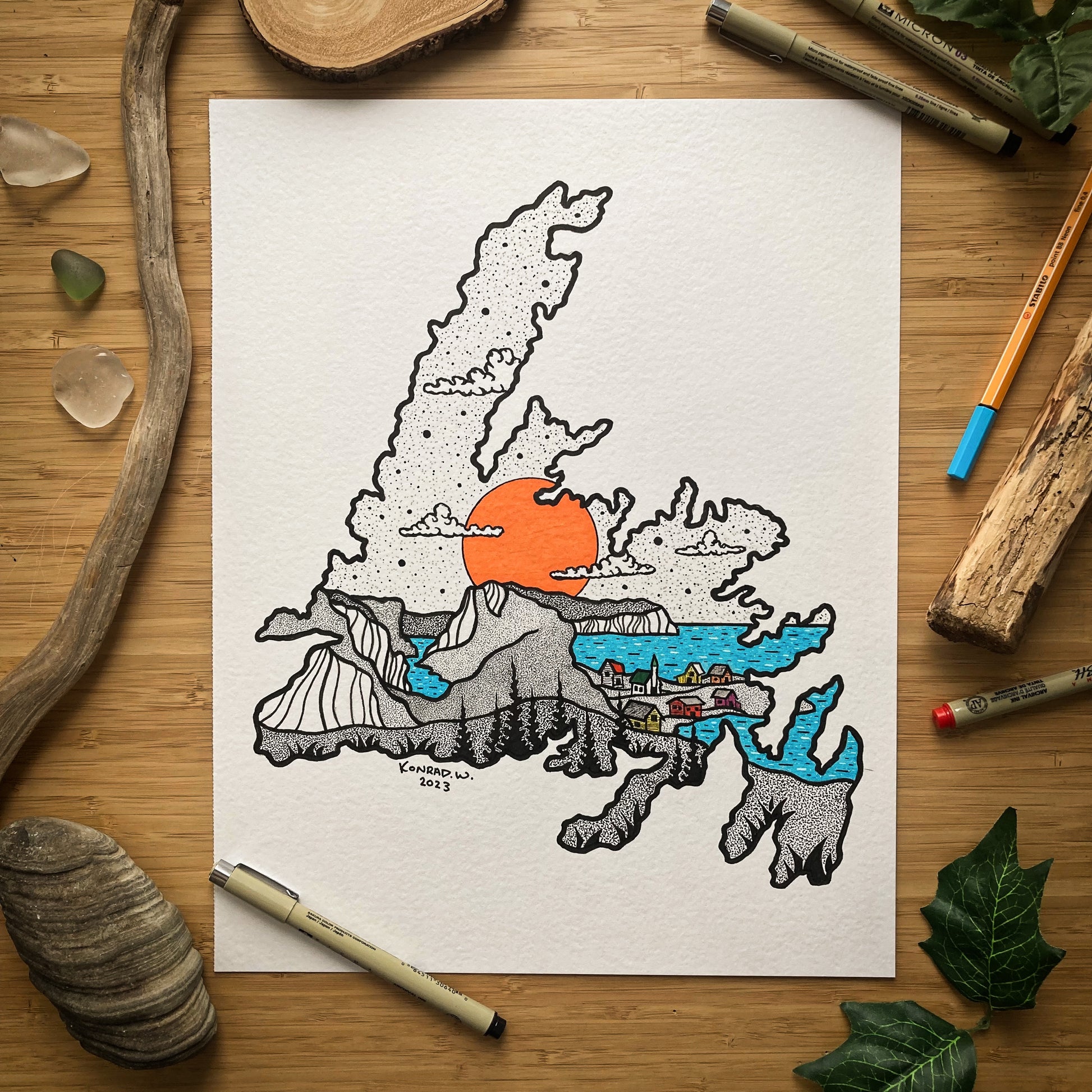 The Province of Newfoundland- 11x14 ORIGINAL Pen and Ink Illustration