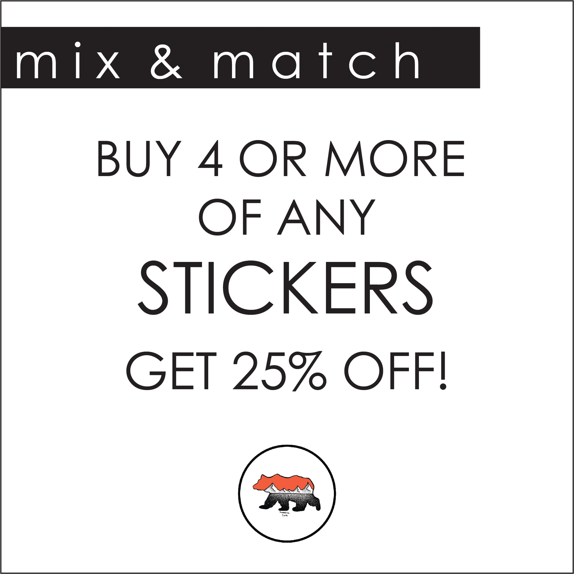 Receive 25% off when you purchase 4 or more stickers! (Yes, you can mix and match!)