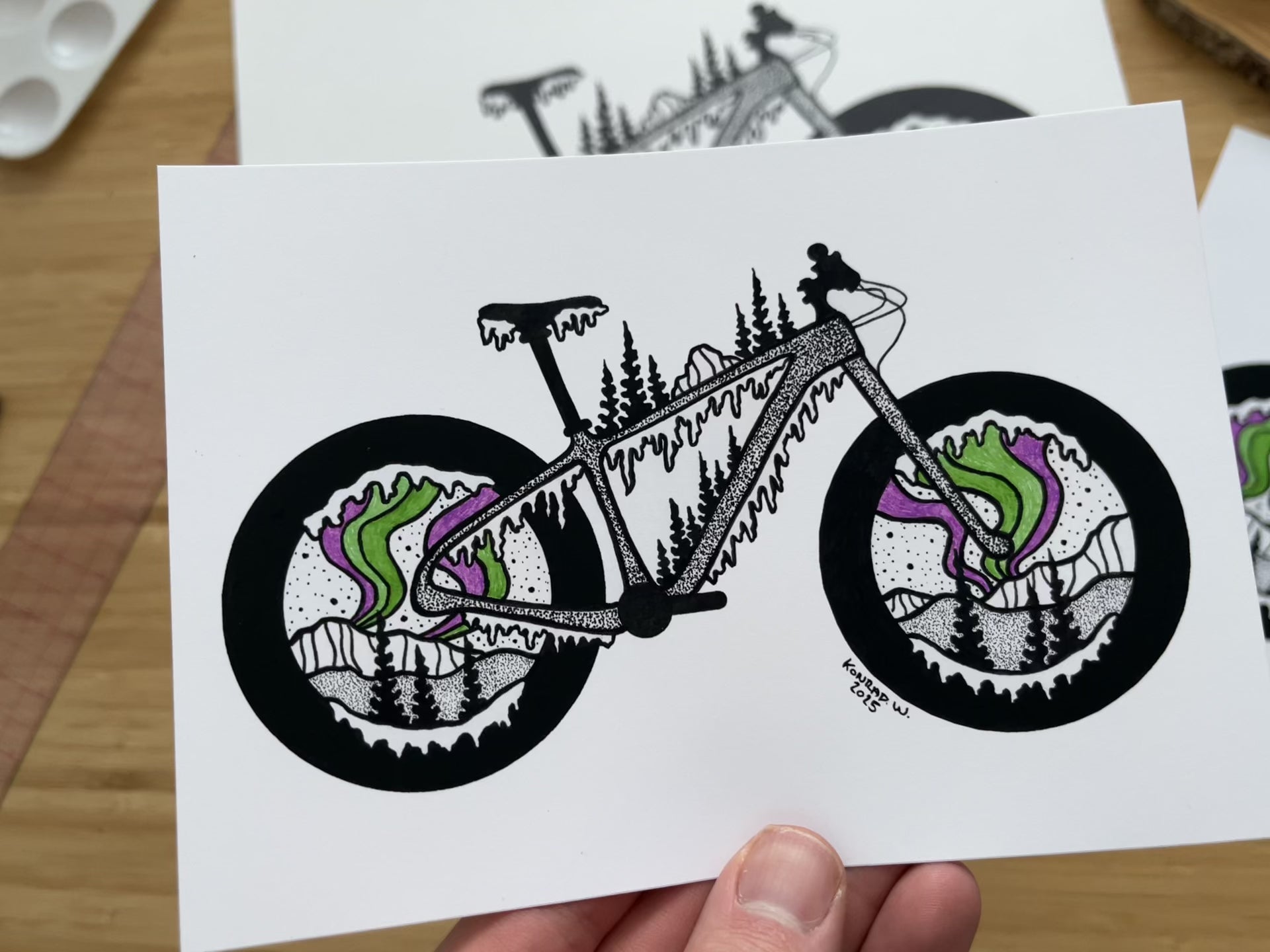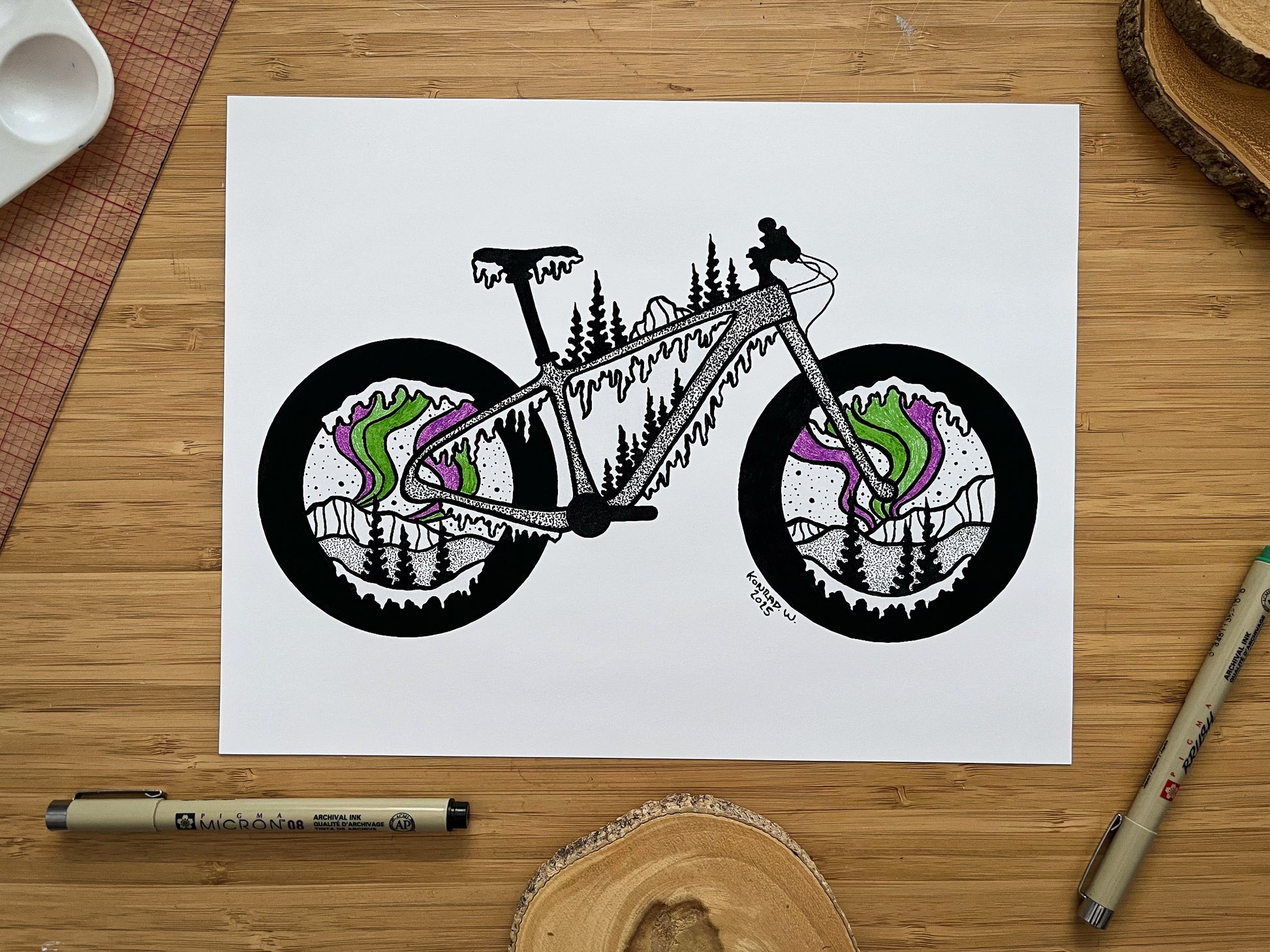 Fat Bike Northern Lights - Pen and Ink PRINT