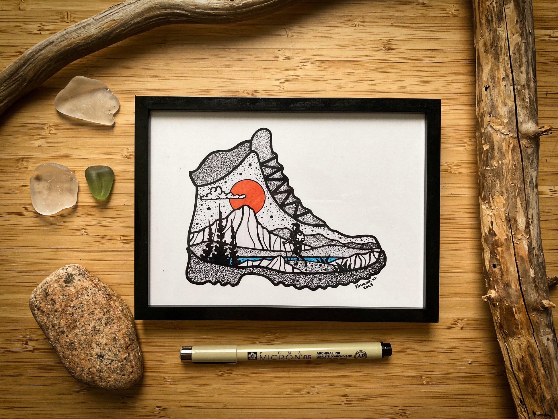 Hiking Boot (2023 Design) - Pen and Ink PRINT