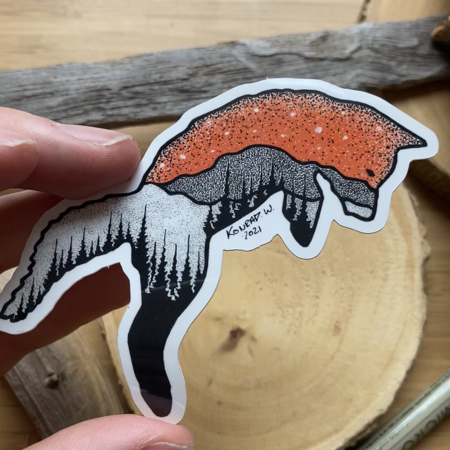 A jumping fox sticker, great for indoor or outdoor applications!