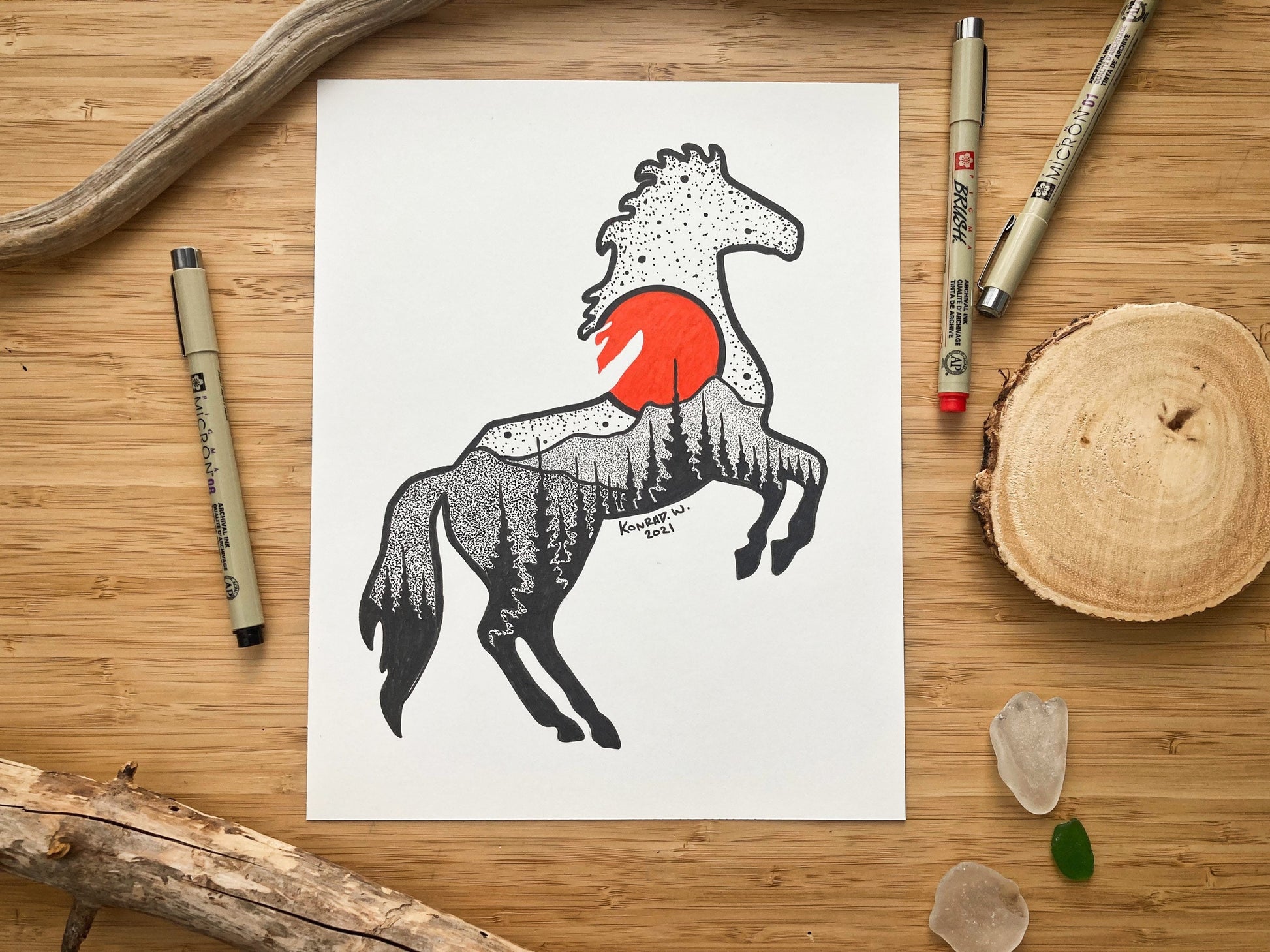 Jumping Horse - 8x10 ORIGINAL Pen and Ink Illustration