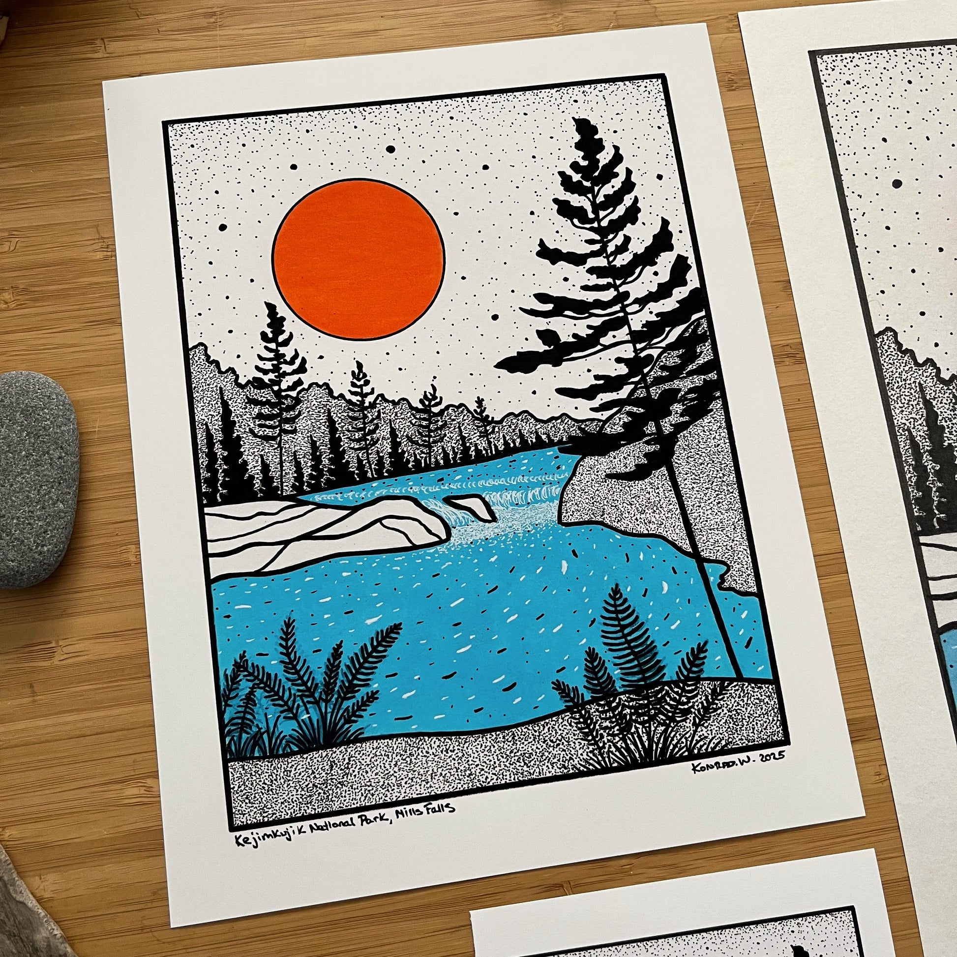 Part of the National - Provincial Park Series, here is the Kejimkujik National Park Print - featuring a scene from Mills Falls