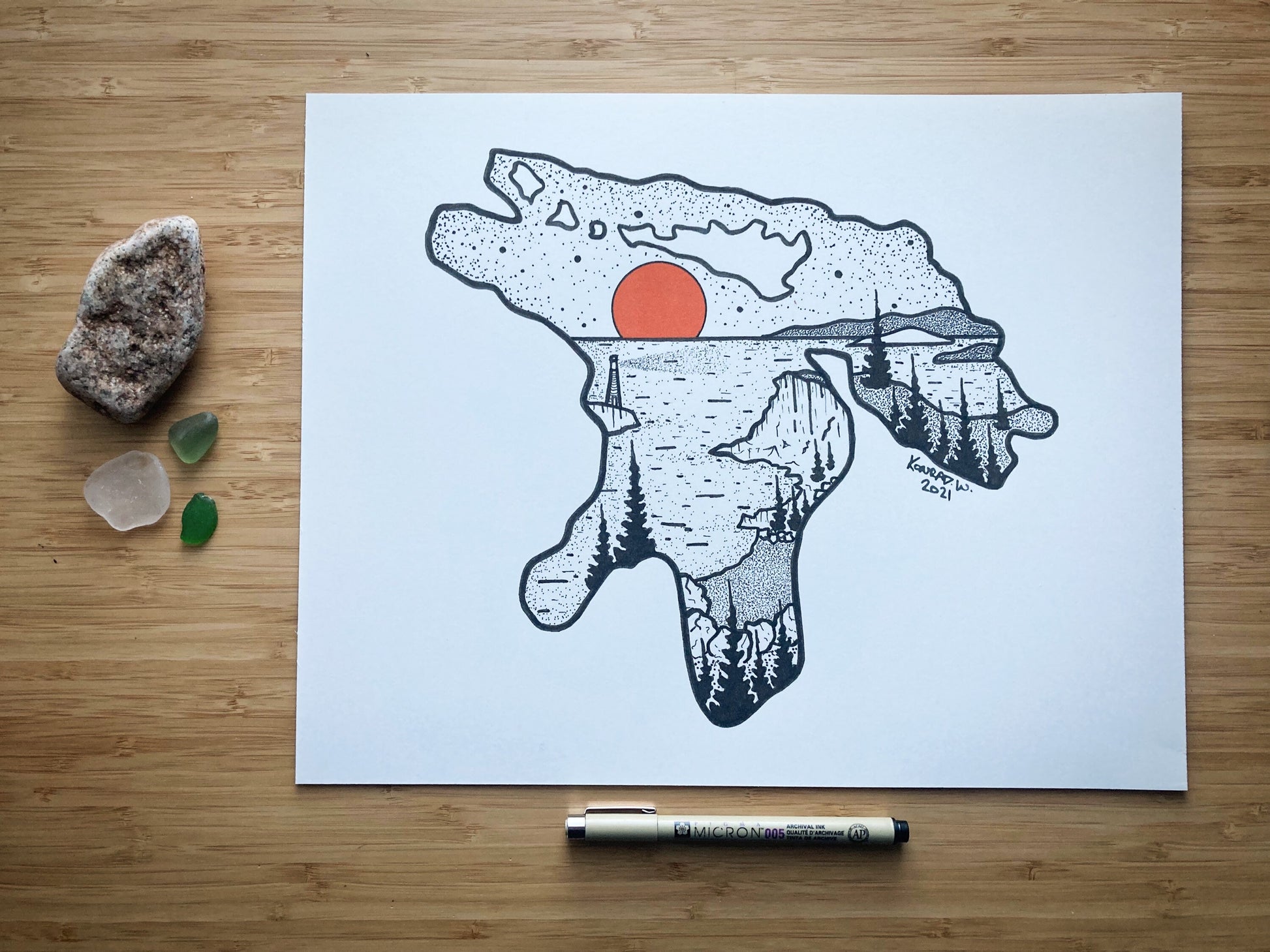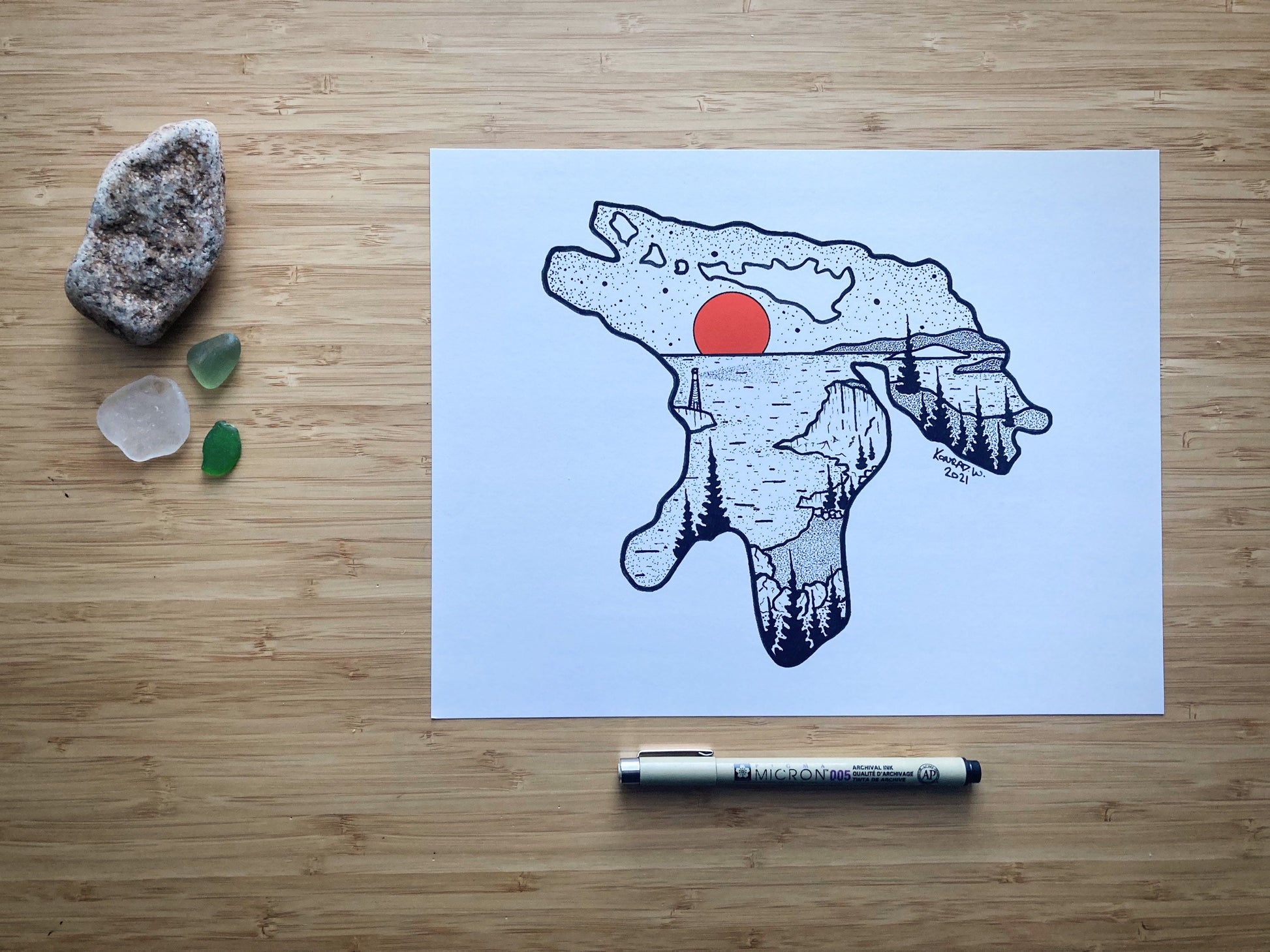 Lake Huron - Pen and Ink PRINT - 2021 Design