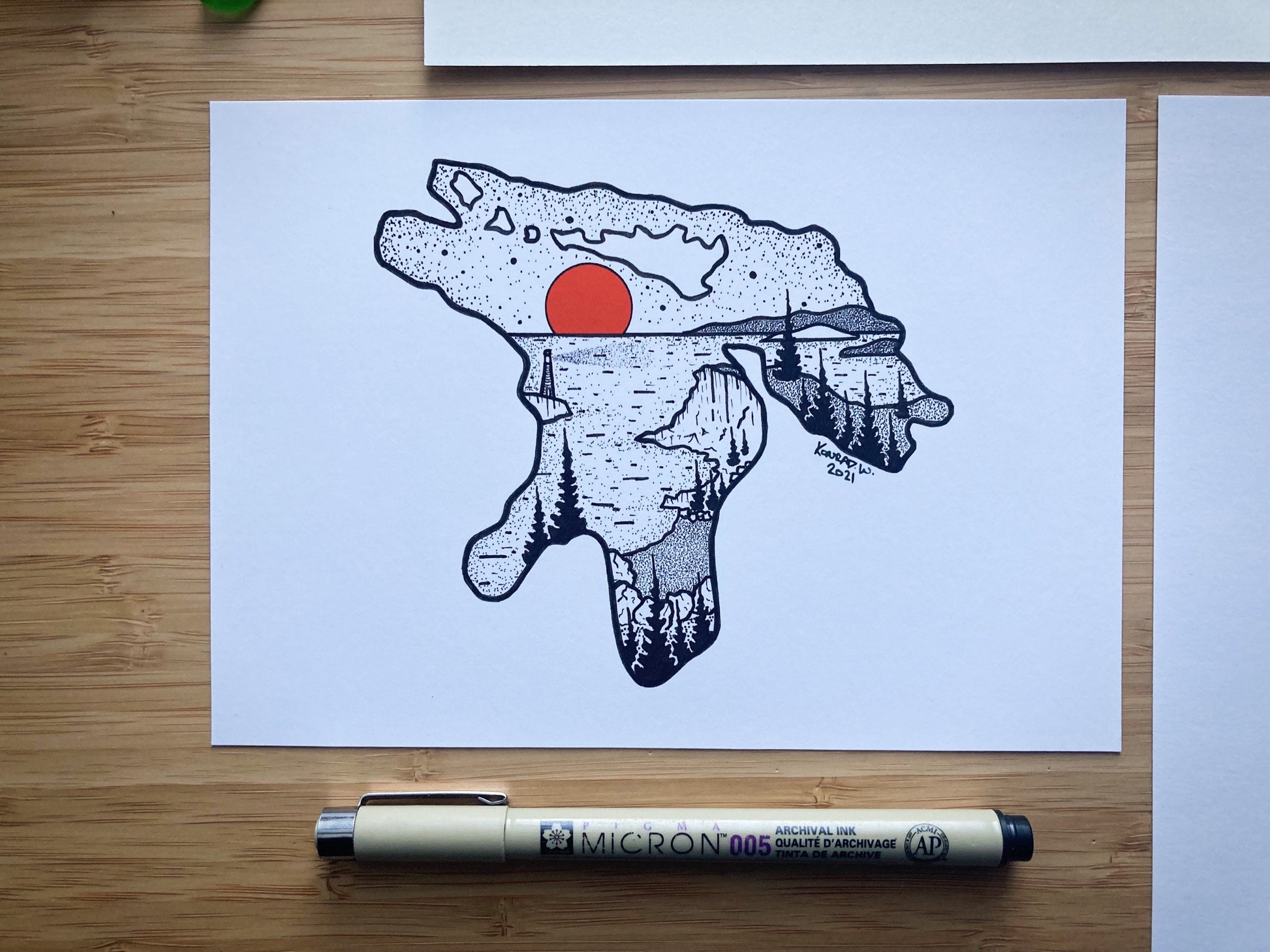 The design of these prints was created by hand using archival ink pens. Using various stippling and shading techniques, the ink gives this piece a more modern or bold design that goes well will virtually any decor style.