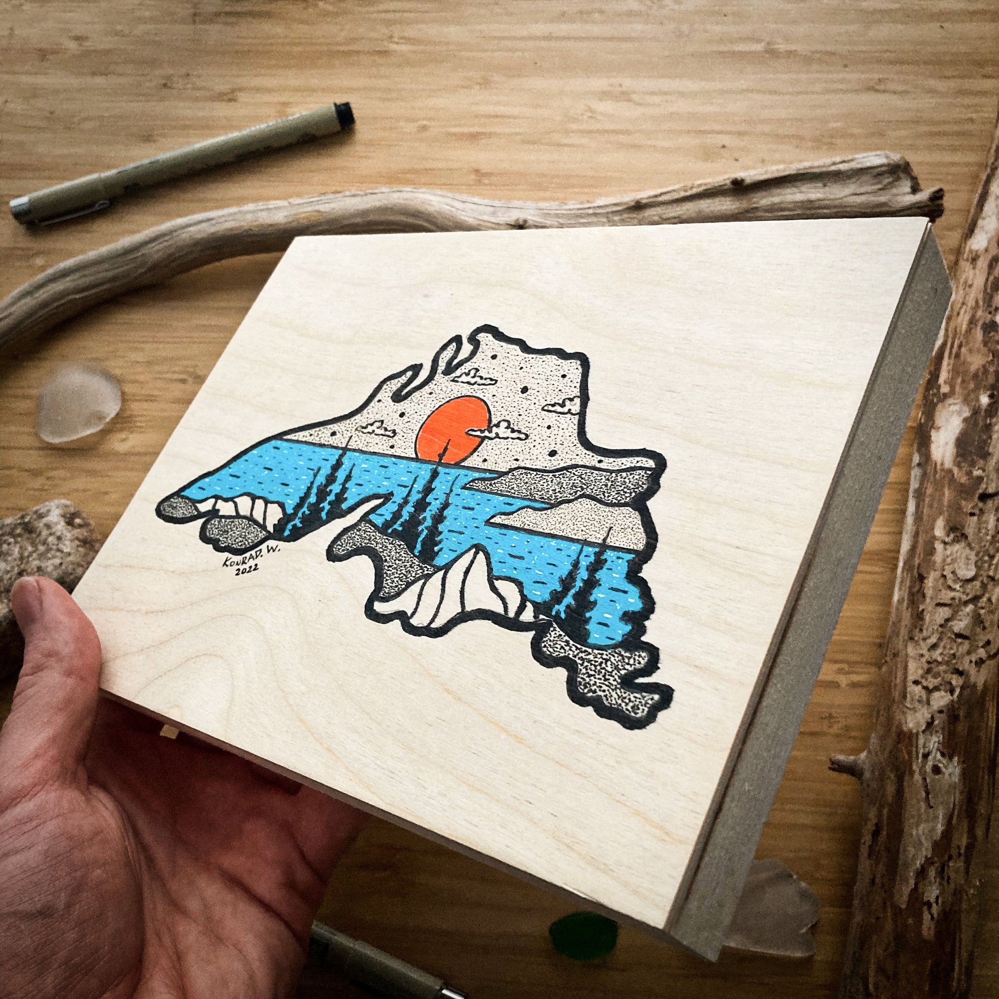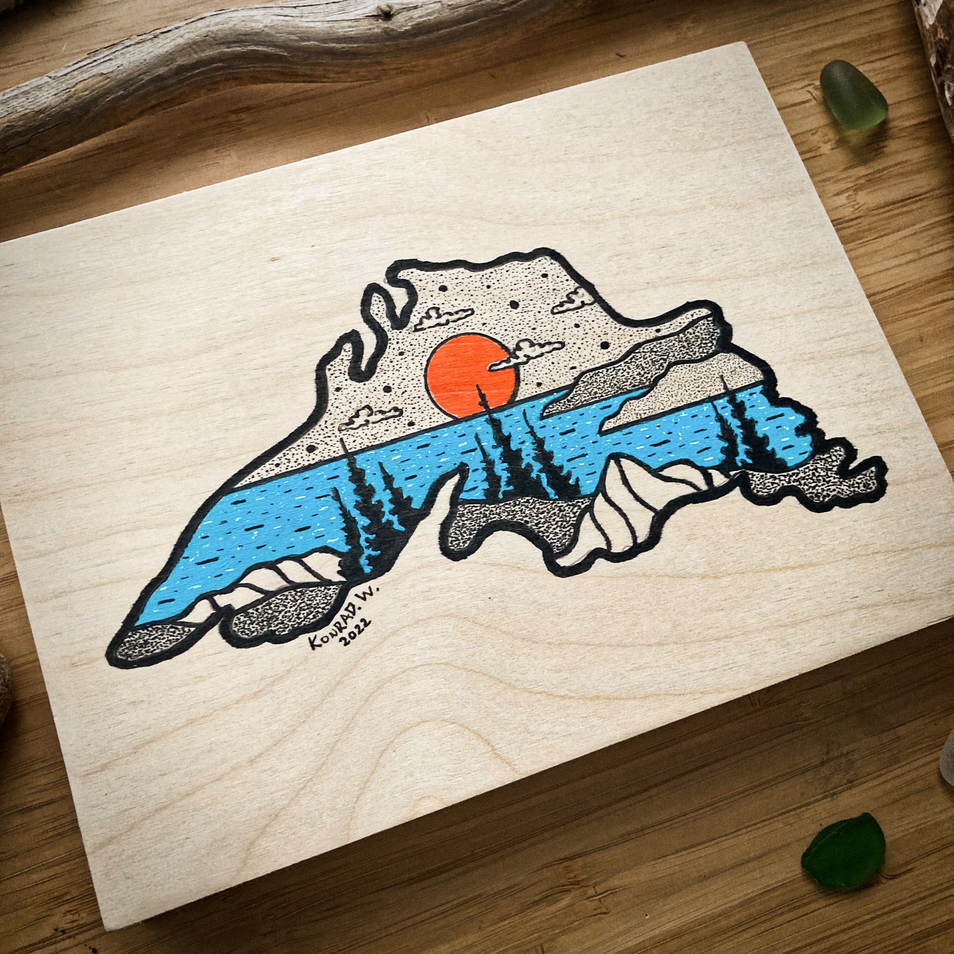 Lake Superior Mini - ORIGINAL 6x8 Wood Panel Illustration
