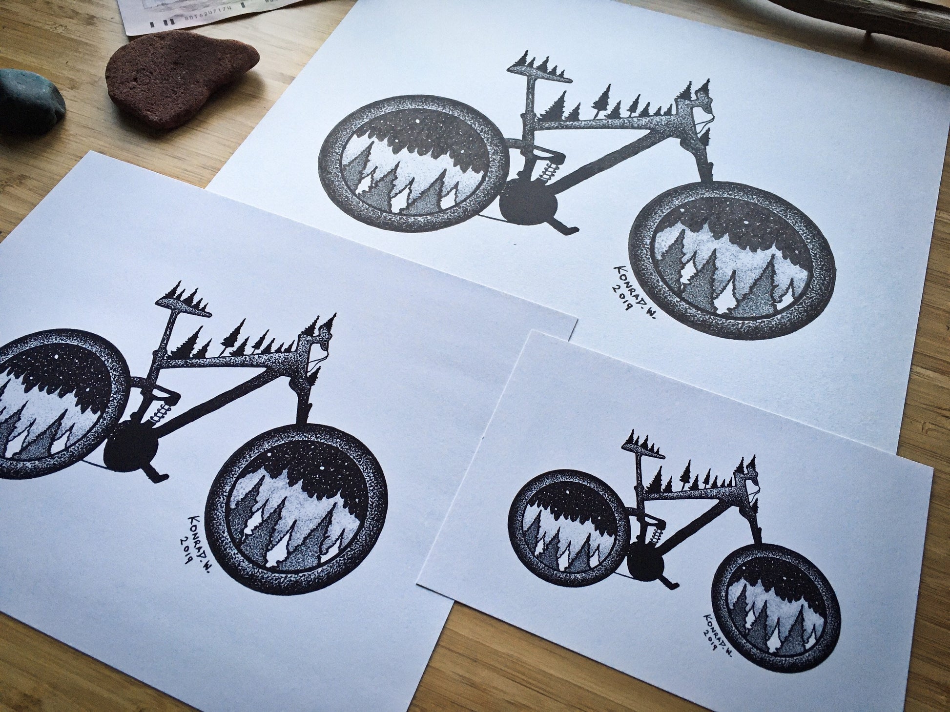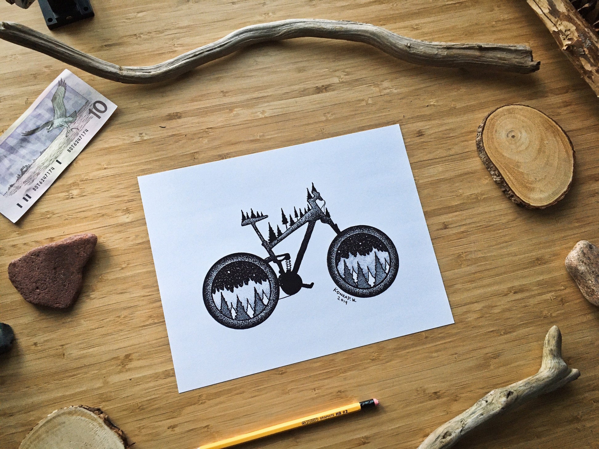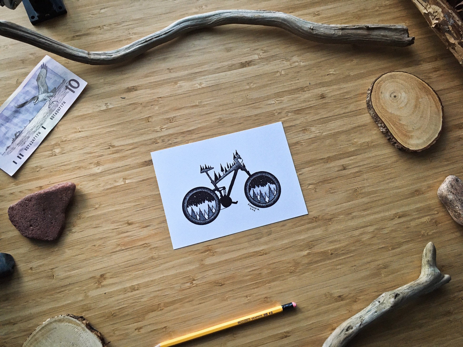 Mountain Bike enthusiasts will fall in love with these prints! Bring your passion to your home or cottage with these bike prints, and be inspired to go shred on your two wheels! Originally hand illustrated using archival ink pens, bringing a modern style to fit virtually any decor. These prints are made available in three different sizes; 5x7, 8.5x11 and 11x14 inches. Printed on premium matte photo paper (5x7 & 8.5x11), and premium artist paper (11x14). Please note that the 11x14 will have an off white tone compared to the smaller sizes. Made to order. Allow 1 business day to process order. Packaged in a clear protective bag for shipping and mailed in rigid mailer. Standard shipping for 5x7" and 8.5x11" does not come with a tracking number. Be sure to follow @naturally_illustrated on Instagram and @naturallyILLUSTRATEDofficial on Facebook for the latest updates and newest projects!