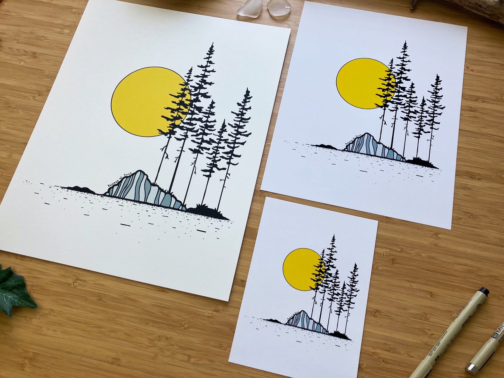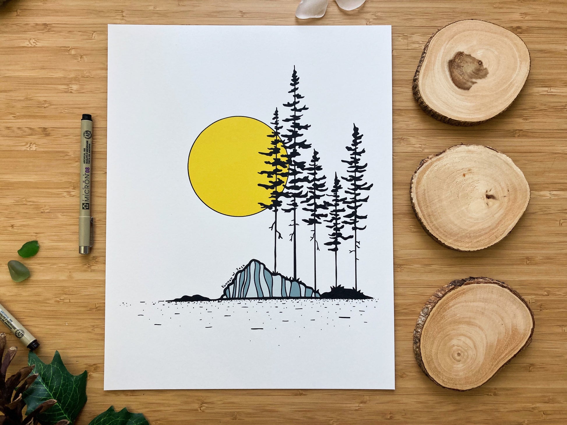 A pen and ink print featuring an island typically found in coves of oceans and Great Lakes. This illustration is perfect for those who love the outdoor lifestyle and simplicity of nature in their art. The design of these prints was created by hand using archival ink pens. Using various stippling and shading techniques, the ink gives this piece a more modern or bold design that goes well will virtually any decor style. These prints come in three different sizes offering you options that fit a multiple of different spaces, from your home, office or cottage. Sizes include: 5x7" 8.5x11" 11x14" The artwork is printed in house with a premium inkjet printer on matte photo paper (5x7" & 8.5x11") and high quality artist paper (11x14"). Please note that the largest print size will have a slightly off white background when compared directly beside the two smaller sizes due to the different type of paper. Made to order. Allow 1 business day to process order. Packaged in a Eco friendly, biodegradable clear protective bag for shipping and mailed in a rigid envelope. *Standard shipping for 5x7" and 8.5x11" does not come with a tracking number Be sure to follow @naturally_illustrated on Instagram and @naturallyILLUSTRATEDofficial on Facebook for the latest updates and newest projects!