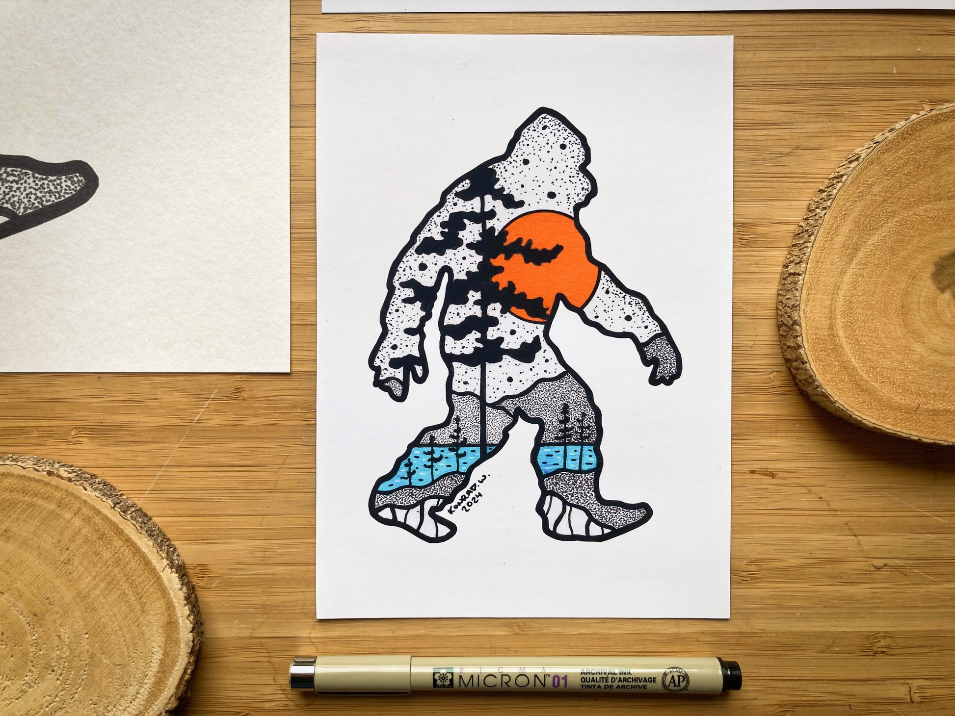 The mythical creature known as the Sasquatch or Big Foot. This illustration is perfect for nature lovers!
