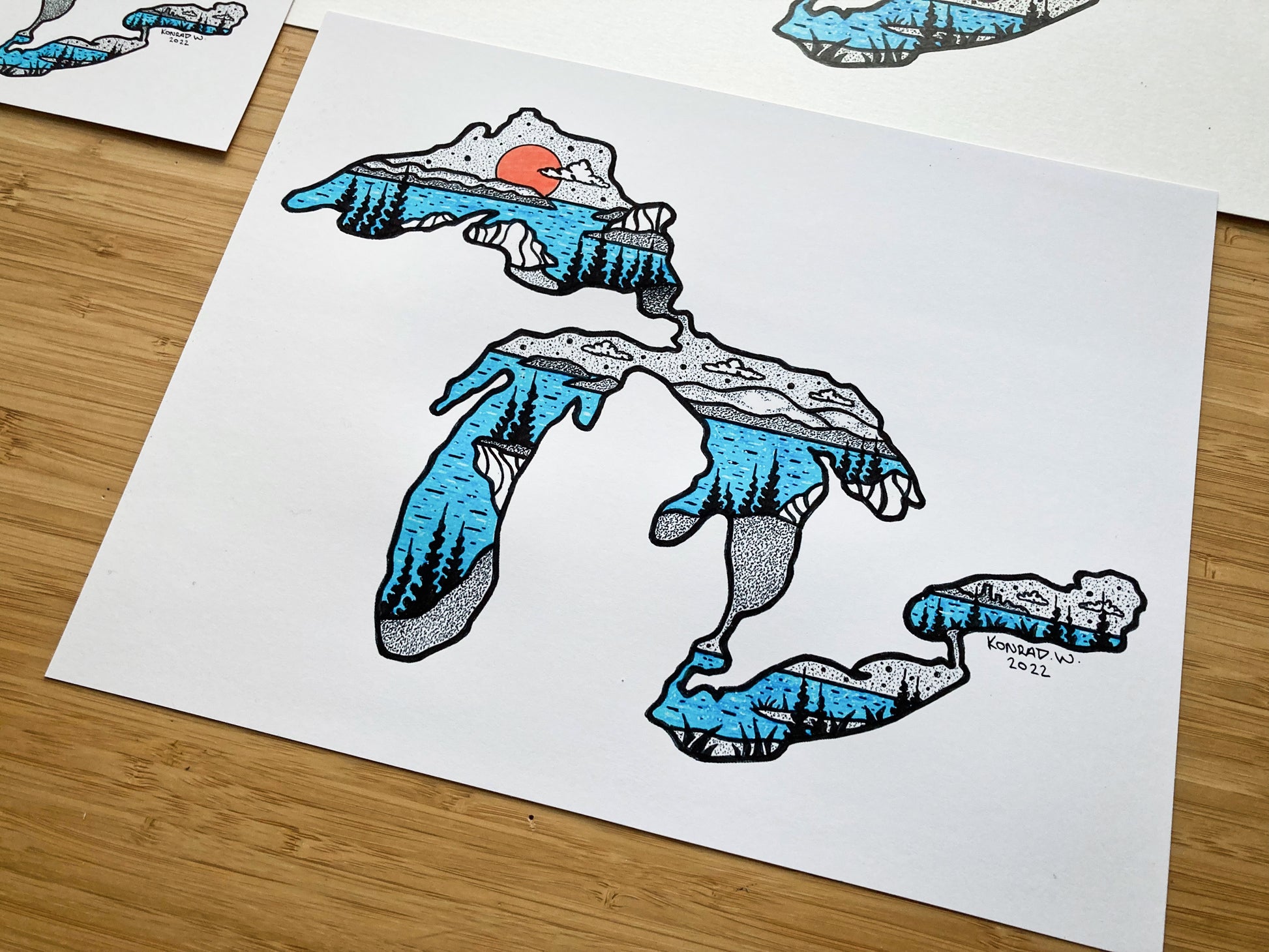 The Great Lakes - Pen and Ink PRINT (2022 edition)