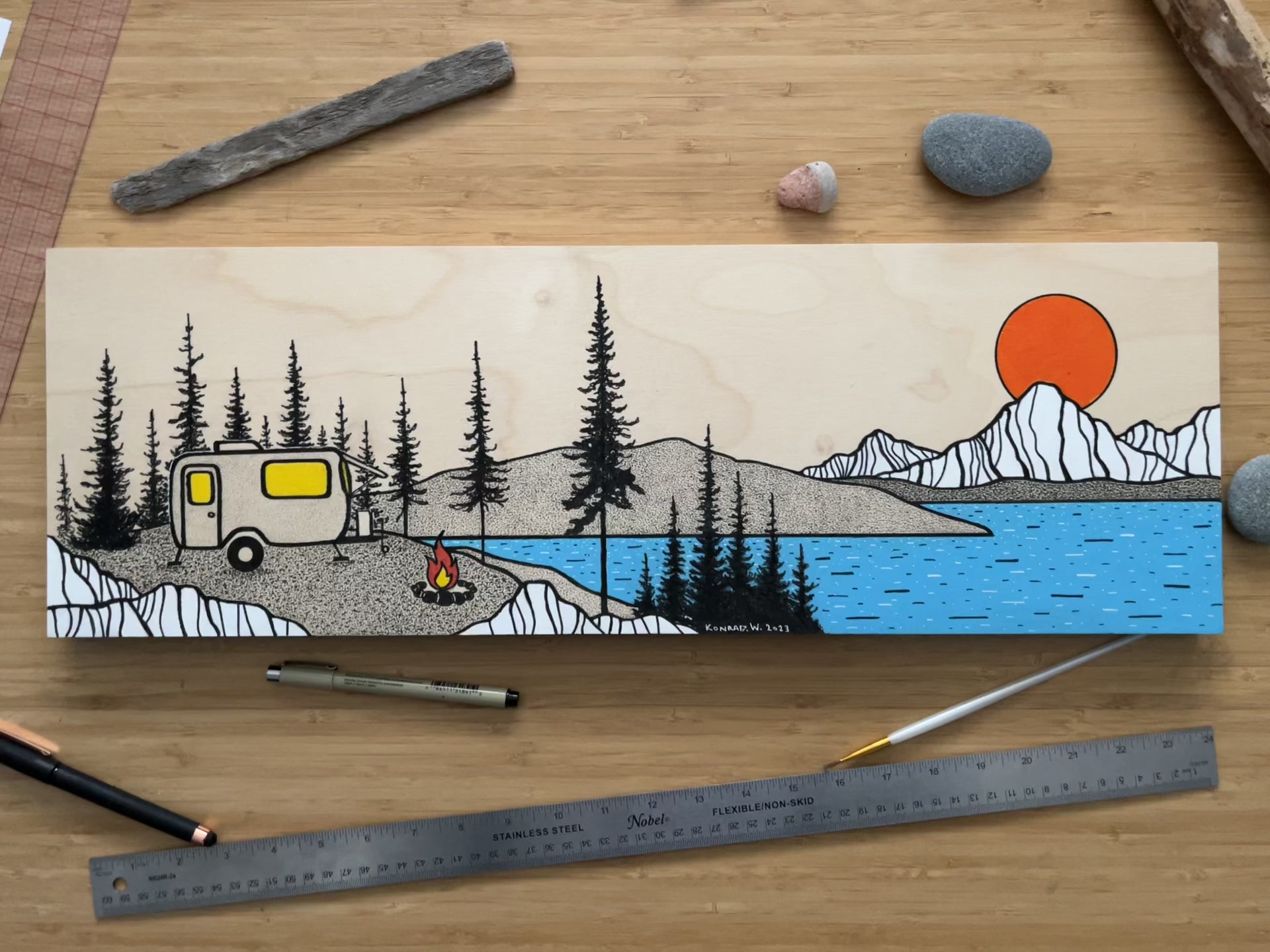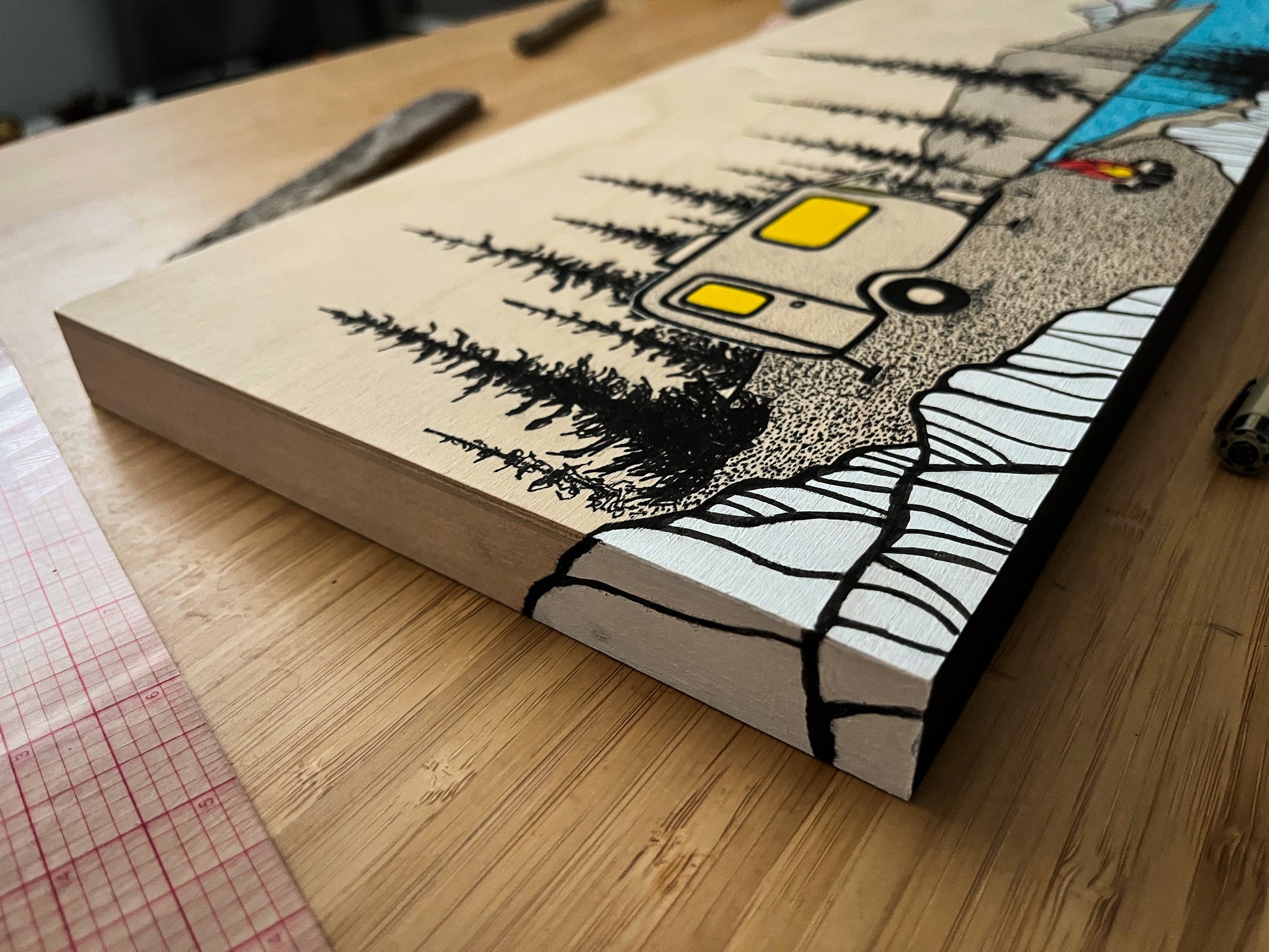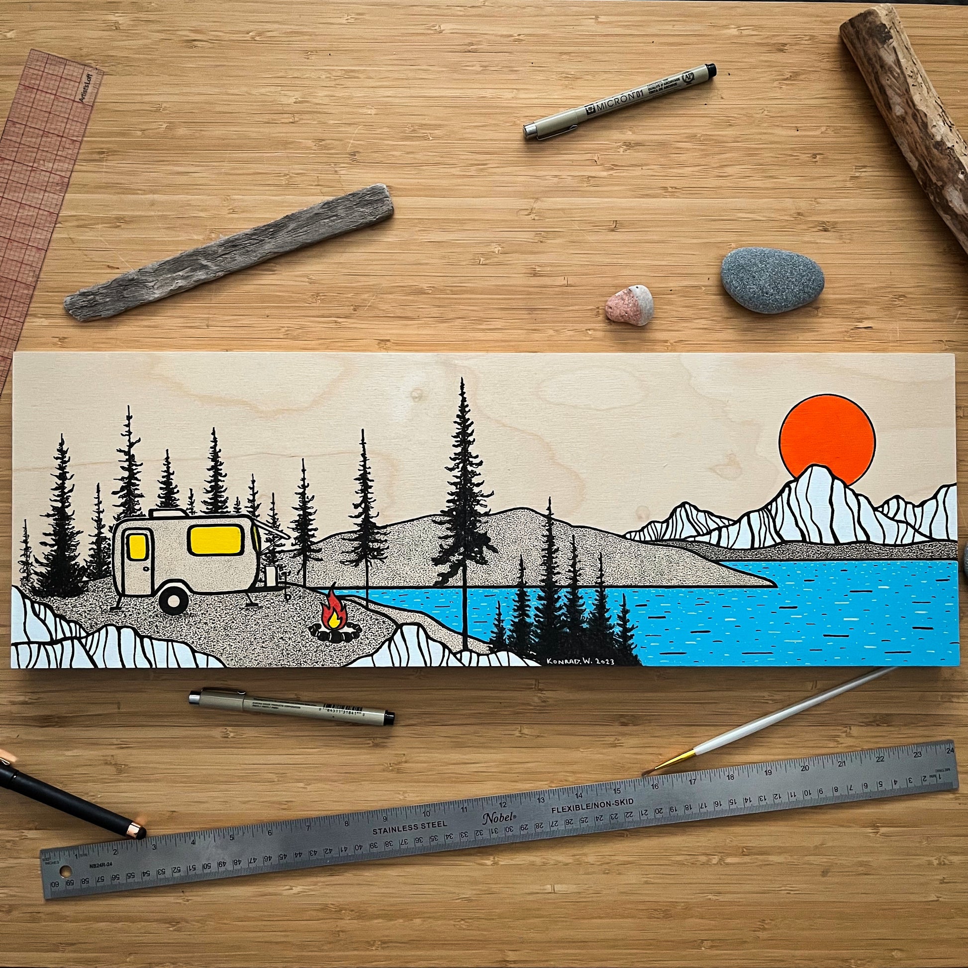 The Perfect Campsite Doesn’t Exisit- ORIGINAL 8x24 Wood Panel Illustration