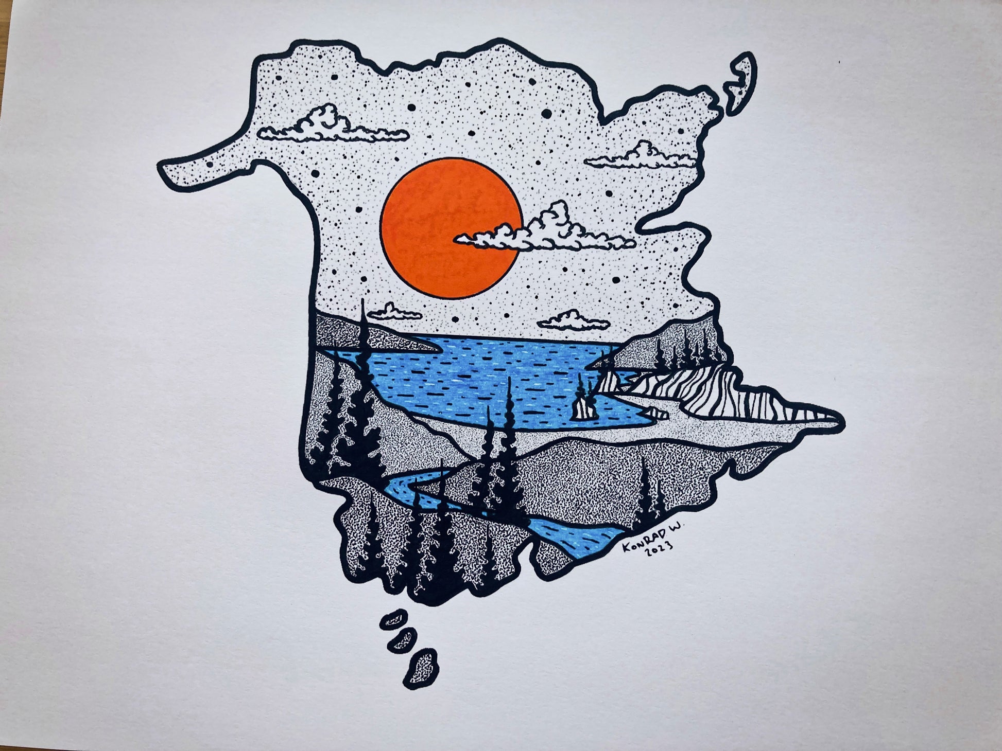 The Province of New Brunswick, illustrated prints. This Pen and Ink Print is perfect for those who have a connection with New Brunswick and it's unmatched beauty!