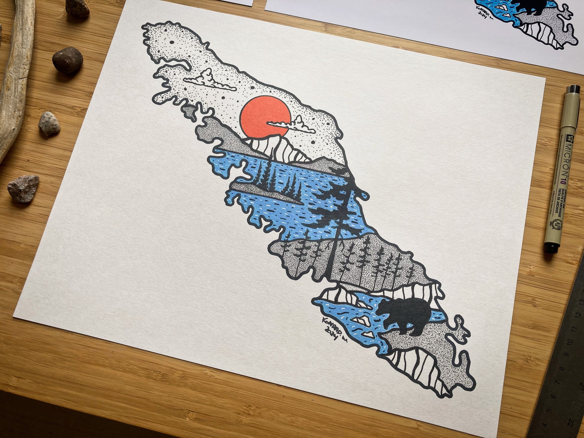 Originally illustrated by hand, and digitally optimized for high quality prints that are perfect for your home, cabin or office! Printed on premium matte photo paper (5x7 & 8.5x11), and premium artist paper (11x14). Please note that the 11x14 print has slighly different tone compared to the smaller sizes.